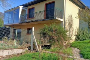 Maison de 1973 entièrement élevée sur sous sol située à l'entrée d'un tout petit village et disposant d'un très grand terrain de 4904 m² très bien exposés. Habitation à rafraichir entièrement intérieurement comprenant : hall / couloir avec rangement, une cuisine, un séjour / salon donnant sur un grand balcon / terrasse avec superbe vue sur la campagne, deux chambres, une salle de douches et wc individuel. Sous sol avec pièce chaufferie / cellier / réserve, une pièce aménageable éventuellement en chambre supplémentaire, un garage / atelier. Cour jardin et prairie arborés avec puits. Proche de toutes les commodités. HONORAIRES CHARGE VENDEURS.