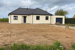 Maison 4 pièces 100 m². L'agence vous propose d'acquérir un bien sur la commune de BOURG ACHARD au calme à proximité des commerces. Sur une parcelle arboré et clos. Elle se compose d'une belle pièce de vie, salle d'eau, wc indépendant, cellier. Trois chambres avec dressing. huisserie double vitrage PVC avec volet roulant électrique. Chauffage poêle a granulé. Assainissement collectif conforme.