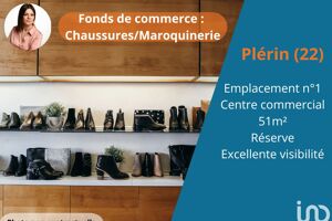 Iad France - Marie LE CAM (06 64 97 81 58) vous propose : Fonds de Commerce – Chaussures & Maroquinerie Emplacement idéal – Centre Commercial - Plérin (22) Implantée au cOEur d’un beau centre commercial de la commune dynamique de Plérin, cette boutique de chaussures et maroquinerie de 51 m² environ (avec réserve) bénéficie d’une excellente visibilité et d’une affluence régulière. Plérin, charmante commune côtière des Côtes-d’Armor, séduit par sa qualité de vie, ses plages, son port de plaisance et ses infrastructures modernes. Sa situation privilégiée attire à la fois une clientèle locale fidèle et une clientèle touristique saisonnière, renforçant ainsi son dynamisme commercial. Les atouts de cette boutique : Emplacement stratégique dans un centre commercial à forte fréquentation, et bénéficiant d’une visibilité et d’une accessibilité optimales. Belle notoriété locale et clientèle fidèle, enrichie par une affluence touristique en haute saison. Chiffre d’affaires de plus de 230 000. Surface optimisée de 51 m² environ, incluant une réserve. Bonus : possibilité d’acquérir une autre boutique dans une commune voisine. Une opportunité à saisir ! Contactez-moi pour plus d’informations. Information d'affichage énergétique sur le bien associé à cette annonce : DPE NS indice et GES NS indice. La présente annonce immobilière a été rédigée sous la responsabilité éditoriale de Mme Marie LE CAM (ID 54342), Agent Commercial mandataire en immobilier immatriculé au Registre Spécial des Agents Commerciaux (RSAC) du Tribunal de Commerce de SAINT BRIEUC sous le numéro 892600859 Retrouvez tous nos biens sur notre site internet. www.iadfrance.fr.