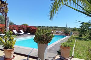 Votre agence 123webimmo l'immobilier au meilleur prix vous présente : Au Cannet des Maures, découvrez une propriété de plain-pied absolument unique, située sur un terrain paysagé d'une superficie exceptionnelle ( + 8.000 m²), véritable écrin de verdure offrant une multitude de possibilités. Ici, chaque jour a le goût des vacances, dans un environnement préservé, sans voisins à proximité, où la nature est reine. La villa de 137 m², ultra accessible et de plain-pied, s'ouvre sur une vaste parcelle parfaitement plate, idéale pour concrétiser tous vos projets de vie : création de paddocks pour chevaux, installation de ruches pour l'apiculture, plantation de vignes ou d'un verger, ou encore aménagement d'un grand potager familial. Ce terrain rare, soigneusement entretenu, valorise la maison et offre un potentiel d'évolution remarquable, que ce soit pour des activités de loisirs, agricoles ou de détente. L'intérieur se compose d'une cuisine aménagée avec coin repas (15 m²), une salle à manger lumineuse (17 m²) ouverte sur un salon cosy (18 m²) doté de la climatisation et d'un poêle à granulés, quatre chambres (de 10 à 13.5 m²), une lingerie / buanderie, une salle de bains, une salle d'eau et des WC séparés. Les espaces de vie se prolongent naturellement vers l'extérieur grâce aux grandes terrasses, idéales pour profiter du cadre apaisant et de la vue sur le jardin. Les dépendances et les garages offrent des espaces supplémentaires pour vos équipements ou vos projets. Pour vos moments de détente, la piscine 10x5 m et ses larges plages vous invitent à la relaxation lors des chaudes journées d'été. La maison, alimentée par forage, bénéficie d'une fosse septique aux normes et de huisseries PVC double vitrage pour un confort optimal. Ce bien rare séduira les amoureux de la nature, les familles en quête d'espace ou les porteurs de projets variés, désireux de valoriser un terrain d'exception et de profiter d'un cadre de vie privilégié, à la fois paisible et plein de potentiel ! *La présente annonce immobilière a été rédigée sous la responsabilité éditoriale de Madame Joëlle ALAPHILIPPE (sans détention de fonds), agent commercial de la SAS les TOITS DE PROVENCE, immatriculée au RSAC de DRAGUIGNAN sous le numéro 792 386 682, titulaire de la carte de démarchage immobilier pour le compte de la société LDTProvence. Les informations sur les risques auxquels ce bien est exposé sont disponibles sur le site du gouvernement : https://www.georisques.gouv.fr.