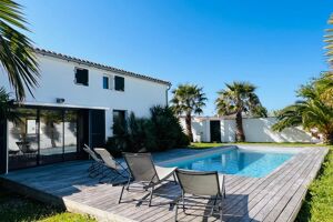 Maison au coeur de village de La Couarde Sur Mer, proche des commerces et plages offrant Une entrée avec vestiaire, une chambre, une salle d'eau avec wc, une pièce de vie spacieuse et lumineuse avec cheminée à insert donnant sur la terrasse et la piscine, un coin cuisine aménagé et équipé avec buanderie-arrière cuisine, un salon donnant sur autre terrasse. À l'étage, cinq chambres, deux salles d'eau avec wc Jardin paysagé des deux côtés de la maison, sans vis à vis, terrain de pétanque, local technique piscine. Possibilités de stationnements. Tout est réuni pour une résidence principale ou de vacances. À ne pas manquer, coup de coeur assuré Référence agence : 9129.