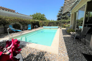 Située dans un quartier paisible, à proximité des commerces, de la piste cyclable et du lycée, sur un terrain clos, arboré et fleuri de 511 m², villa de plain-pied, bâtie sur vide sanitaire, offre un cadre de vie agréable. D'une surface bâtie de 124 m² (106 m² habitables), elle se compose d'une entrée ouvrant sur un séjour / salon lumineux équipé d'un poêle à granulés, avec accès à une véranda, Une cuisine indépendante, aménagée et entièrement équipée, Trois chambres confortables, Une salle d'eau, Un WC séparé avec lave-mains, Un garage / buanderie 18 m² avec mezzanine 11 m² offrant un espace de rangement supplémentaire. une véranda de 21 m²avec vue et accès direct à la piscine avec deux stores Equipements et prestations : Isolation des combles par soufflage (30 cm), Portail électrique, Gouttières déjà installées, Adoucisseur d'eau au CO, Piscine au chlore (3,5 x 7 m), Terrasse avec carport adapté pour un camping-car de 20 m² + une voiture Deux abris de jardin. Idéale pour une vie de famille ou pour un projet de résidence secondaire. Les informations sur les risques auxquels ce bien est exposé sont disponibles sur le site Géorisques : www.georisques.gouv.fr.