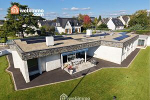 Votre agence 123webimmo l'immobilier au meilleur prix vous présente : Au cœur de Carhaix, à proximité immédiate des commodités et de la vie culturelle, venez découvrir cette maison d'architecte de plain-pied de 234 m² habitables, solidement édifiée sur une parcelle constructible de 1 281 m². Dès l'entrée, vous serez saisis par la qualité des matériaux et l'espace qui caractérisent cette demeure de charme : un vaste hall, mélangeant la pierre et le bois avec penderie permet d'accéder aux différents espaces de vie. La pièce principale de 50 m², gorgée de lumière grâce à de larges baies vitrées, offre un cadre chaleureux avec sa cheminée hybride et un accès direct à la terrasse plein sud. Une partie salle à manger en lien avec la cuisine séparée, aménagée et équipée avec coin repas complète cet espace convivial. Une partie nuit pensée pour le confort comprend un couloir avec rangements desservant 3 chambres (dont 2 avec lavabo), une salle d'eau, un WC séparé, ainsi qu'un grand bureau, idéal pour le télétravail, communiquant avec une 4 ? chambre de type suite parentale, comprenant dressing et salle d'eau avec douche à l'italienne. Une pièce supplémentaire avec dressing et salle d'eau donne accès à une véranda abritant un spa de nage, parfait pour la détente. Au sous-sol fonctionnel, une cave, une buanderie, une pièce technique et accès au vide sanitaire. À l'extérieur : une terrasse, un abri de jardin en bois, un carport, un parking enrobé, le tout sur un terrain clos. La maison comporte des équipements de type énergies renouvelables et une bonne isolation qui lui confère un bon diagnostic de performance énergétique, ainsi qu'une installation photovoltaïque récemment installée sur le toit plat. Prestations : Menuiseries aluminium double vitrage - Volets roulants électriques - Pompe à chaleur - Cheminée hybride - Panneaux solaires - Prise de recharge pour véhicule électrique - Electricité neuve ? Fibre ? Tout-à-l'égout - étanchéité toiture refaite Une maison familiale alliant confort moderne, belles prestations et emplacement privilégié au centre de Carhaix. Pour plus d'informations et organiser une visite 7j / 7 Contactez Romuald DHENNIN au 06 26 12 28 50 ou par email à romuald.dhennin@123webimmo.com Agent Commercial inscrit au RSAC de Saint-Brieuc sous le numéro 895336857 Les informations sur les risques auxquels ce bien est exposé sont disponibles sur le site du gouvernement : https://www.georisques.gouv.fr.