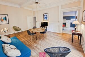 À deux pas des Halles de Nîmes, au 1er étage d'un immeuble ancien, cet appartement de caractère entièrement rénové offre 2 chambres, de beaux volumes et de magnifiques hauteurs sous plafond. Profondément urbain et élégant, il capture l'essence même du chic « Mat & Seb » : un mélange parfait de style, de confort et de personnalité. Un pied-à-terre citadin qui ne manque pas de charme. Surface CARREZ : 98.33 m².