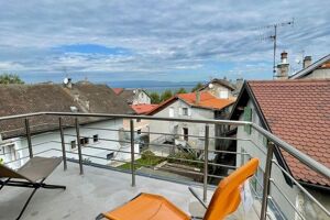 Iad France - Marine Balouzat (06 40 94 47 52) vous propose : Triplex avec balcon et vue sur le lac – Neuvecelle / Évian-les-Bains À seulement 1 minute à pied du lac et 5 minutes du centre-ville d’Évian-les-Bains, cette charmante maison des années 1950 vous invite à imaginer votre futur chez-vous dans un cadre paisible et privilégié. Offrant trois chambres, deux salles de bain, un WC séparé et un garage indépendant, cette maison dispose également d’un jardin de 125 m² environ, idéal pour profiter des beaux jours et des moments en famille ou entre amis. La chambre parentale bénéficie d’un balcon avec une vue dégagée sur le lac, parfait pour vos petits-déjeuners au soleil ou vos soirées tranquilles. L’espace de vie convivial comprend une cuisine ouverte sur le salon, offrant un bel espace pour partager vos moments du quotidien. Bien que des travaux de rénovation soient à prévoir, cette maison mitoyenne d’un côté recèle un fort potentiel pour créer un intérieur moderne et personnalisé, tout en profitant d’un emplacement exceptionnel dans une petite rue calme. Rare sur le marché, ce triplex conjugue charme de l’ancien, proximité du lac et du centre-ville et potentiel de valorisation. Une visite vous permettra d’imaginer toutes les possibilités qu’offre ce bien unique. N'hésitez pas à nous contacter, ce bien mérite d'être visité ! Honoraires d’agence à la charge du vendeur. Information d'affichage énergétique sur ce bien : classe ENERGIE D indice 246 et classe CLIMAT A indice 8. Les informations sur les risques auxquels ce bien est exposé sont disponibles sur le site Géorisques : www.georisques.gouv.fr. La présente annonce immobilière a été rédigée sous la responsabilité éditoriale de Mlle Marine Balouzat EI (ID 86607), mandataire indépendant en immobilier (sans détention de fonds), agent commercial de la SAS I@D France immatriculé au RSAC de THONON LES BAINS sous le numéro 752824862, titulaire de la carte de démarchage immobilier pour le compte de la société I@D France SAS. Le présent bien est commercialisé dans le cadre d'une délégation de mandat. Retrouvez tous nos biens sur notre site internet. www.iadfrance.fr.