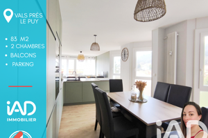 Iad France - Gillia Gontero vous propose : Appartement T4 avec Balcon à Vals-près-le-Puy - Vue Imprenable Découvrez ce magnifique appartement situé au 5ème étage d'une résidence de 6 niveaux, offrant une vue imprenable sur les environs de Vals-près-le-Puy. D'une surface totale de 83 m², cet appartement a été entièrement rénové pour offrir un cadre de vie exceptionnel alliant modernité et confort. Vous profiterez d'un espace de vie lumineux comprenant un salon spacieux de 40 m², une cuisine ouverte entièrement équipée. Deux chambres confortable, une salle de bain moderne et un WC séparé. Le point fort de ce bien est sans conteste son balcon vous offrant un espace extérieur privilégié pour profiter de moments de détente. Une cave complète se bien. Les prestations complémentaires : la fibre optique, l'ascenseur, menuiserie récente, chauffage au gaz naturel vous assurent un confort de vie optimal au quotidien. DPE : D Ne manquez pas l'opportunité de vivre dans ce cocon douillet et moderne à Vals-près-le-Puy. Contactez-moi pour une visite ! La presente annonce immobiliere vise 2 lots situés dans une copropriété de 273 lots au total et ne faisant l'objet d'aucune procédure en cours citée à l'article L. 721-1 du code de la construction et de l'habitation. Montant moyen mensuel de charges déclaré par le vendeur : 216.67€ par mois (soit 2600 € annuel). Honoraires d'agence à la charge du vendeur. Information d'affichage énergétique sur ce bien : classe ENERGIE D indice 226 et classe CLIMAT D indice 49. Les informations sur les risques auxquels ce bien est exposé, y compris l'obligation légale de débroussaillement, sont disponibles sur le site Géorisques : http://www.georisques.gouv.fr. La présente annonce immobilière a été rédigée sous la responsabilité éditoriale de Mme Gillia Gontero mandataire indépendant en immobilier (sans détention de fonds), agent commercial de la SAS I@D France immatriculé au RSAC de Saint Etienne sous le numéro 979739091, titulaire de la carte de démarchage immobilier pour le compte de la société I@D France SAS.