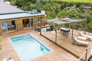 Iad France - Stéphanie Salles vous propose : Étang-Salé-Les-Hauts à 5 minutes du centre-ville, cette demeure de plain-pied de 190 m² conjugue charme et modernité. Édifiée sur un terrain de 719 m², elle a été rénovée avec goût et offre des prestations de qualité dans un cadre paisible et une vue panoramique sur l'océan. Dès l’entrée, les espaces de vie lumineux séduisent par leur générosité et leur atmosphère conviviale accompagnée d'une cuisine moderne entièrement équipée. La maison propose cinq chambres, ainsi que deux salles d’eau et deux WC pour un confort optimal. La pièce maîtresse de cette propriété reste la piscine et la grande terrasse en bois de 120 m², offrant une vue panoramique à couper le souffle sur l’océan. Véritable invitation à la contemplation, elle se prête aussi bien aux moments de détente qu’aux soirées conviviales. Parmi ses nombreux atouts : chauffe-eau solaire, système de vidéosurveillance, portail électrique, fosse septique, terrasses couvertes, cuisine extérieure et carport. Les combles aménageables laissent également la possibilité de faire évoluer la maison selon vos besoins. Modernité et panorama exceptionnel se conjuguent ici pour faire de cette maison une opportunité rare sur le marché de L’Étang-Salé. Laissez-vous séduire et programmons dès maintenant une visite. Honoraires d'agence à la charge du vendeur. Bien non soumis au DPE. Les informations sur les risques auxquels ce bien est exposé, y compris l'obligation légale de débroussaillement, sont disponibles sur le site Géorisques : http://www.georisques.gouv.fr. La présente annonce immobilière a été rédigée sous la responsabilité éditoriale de Mme Stéphanie Salles mandataire indépendant en immobilier (sans détention de fonds), agent commercial de la SAS I@D France immatriculé au RSAC de SAINT-PIERRE sous le numéro 984926279, titulaire de la carte de démarchage immobilier pour le compte de la société I@D France SAS.