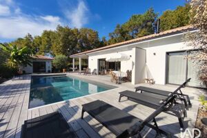 Iad France - Delphine COMTE (07 60 98 75 25) vous propose : Villa contemporaine d’exception à deux pas du Lac de Sanguinet À l’orée de la forêt, dans un environnement préservé et confidentiel, découvrez cette somptueuse villa contemporaine achevée en 2023 par un constructeur de renom, gage de qualité et offrant une garantie décennale. Dès l’entrée, vous êtes séduits par la luminosité, les volumes généreux et les hauteurs sous plafonds. La pièce de vie de près de 80 m² environ, offre une atmosphère élégante et chaleureuse grâce à son poêle à bois et de part sa baie à galandage, il n'y a plus de frontière entre intérieur et extérieur. La cuisine, aux finitions soignées et aux équipements de qualité, s’intègre harmonieusement à cet espace de réception. Un cellier attenant complète l’ensemble avec discrétion et fonctionnalité. Côté nuit, la villa propose une superbe chambre parentale, véritable cocon d’intimité, avec sa porte-fenêtre ouvrant directement sur la terrasse en bois exotique. Deux autres chambres disposent chacune de leur salle d’eau privative avec WC, offrant à vos invités ou à votre famille un confort absolu et une parfaite liberté car l'accès est indépendant. La dépendance offre également une capacité d'accueil supplémentaire, parfaite pour accueillir un adolescent sur ses premiers pas d'indépendance, pour une activité professionnelle ou pour vous octroyer un lieu privilégié pour votre passion. Implantée sur un terrain paysager de plus de 1 000 m² environ en lisière de forêt, cette propriété conjugue nature et modernité avec raffinement. La terrasse accueille une piscine au sel de 10m x 4m, équipée d’un volet immergé pour une sécurité optimale. Pour le stationnement, tout est pensé également pour recevoir vos véhicules en tout genre, voiture, camping-car, bateau. Avec son allée gravillonnée et son garage de 28 m² environ, tout y passe. Le cadre est rare, à quelques minutes seulement du lac, entre sérénité boisée et douceur de vivre. Je vous invite à venir découvrir les autres atouts de cette villa contemporaine aux prestations remarquables. Honoraires d’agence à la charge du vendeur. Information d'affichage énergétique sur ce bien : classe ENERGIE A indice 31 et classe CLIMAT A indice 1. Les informations sur les risques auxquels ce bien est exposé sont disponibles sur le site Géorisques : www.georisques.gouv.fr. La présente annonce immobilière a été rédigée sous la responsabilité éditoriale de Mlle Delphine COMTE EI (ID 18815), mandataire indépendant en immobilier (sans détention de fonds), agent commercial de la SAS I@D France immatriculé au RSAC de MONT DE MARSAN CEDEX sous le numéro 819678152, titulaire de la carte de démarchage immobilier pour le compte de la société I@D France SAS. Le présent bien est commercialisé dans le cadre d'une délégation de mandat. Retrouvez tous nos biens sur notre site internet. www.iadfrance.fr.