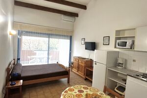 Iad France - Nathalie Razafitrimo vous propose : Charmant Studio avec Terrasse et parking à Balaruc-les-Bains Découvrez ce ravissant appartement de 23.24 m², à Balaruc-les-Bains, IDEAL POUR CURISTES OU INVESTISSEURS Cet appartement lumineux se compose d'une pièce de vie principale pouvant servir de salon et de chambre, d'une salle d'eau avec douche et toilettes, d'un coin cuisine équipée, aménagée. De plus, vous bénéficierez d'une agréable terrasse exposée sud. Construit en 1988, cet appartement est situé au premier et dernier étage d'un immeuble, ce qui assure une tranquillité et une intimité appréciable. Vous profiterez également de deux places de parking. La climatisation réversible vient d'être Installée. Le ravalement de façade récemment effectué. Faibles charges de copropriété. Cette opportunité est à ne pas manquer. Contactez nous dès aujourd'hui pour organiser une visite. La presente annonce immobiliere vise 3 lots situés dans une copropriété de 21 lots au total et ne faisant l'objet d'aucune procédure en cours citée à l'article L. 721-1 du code de la construction et de l'habitation. Montant moyen mensuel de charges déclaré par le vendeur : 25€ par mois (soit 300 € annuel). Honoraires d'agence à la charge du vendeur. Information d'affichage énergétique sur ce bien : classe ENERGIE C indice 182 et classe CLIMAT A indice 5. Les informations sur les risques auxquels ce bien est exposé, y compris l'obligation légale de débroussaillement, sont disponibles sur le site Géorisques : http://www.georisques.gouv.fr. La présente annonce immobilière a été rédigée sous la responsabilité éditoriale de Mme Nathalie Razafitrimo mandataire indépendant en immobilier (sans détention de fonds), agent commercial de la SAS I@D France immatriculé au RSAC de EVRY sous le numéro 823527494, titulaire de la carte de démarchage immobilier pour le compte de la société I@D France SAS.