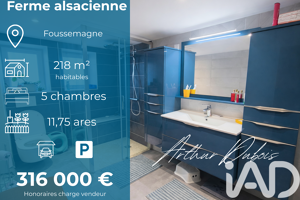 Iad France - Arthur Dubois vous propose : Splendide Ferme de Caractère - 5 Chambres - Terrasse - Charme Authentique Bienvenue à Foussemagne, dans un havre de paix chargé d'histoire, où cette ferme d'exception de 218 m² habitables et datant de 1891 vous invite à plonger dans un univers authentique et réconfortant. Nichée sur un terrain de 1175 m², cette propriété unique offre un cadre de vie privilégié, à l'abri de l'agitation urbaine. Au rez-de-chaussée, vous découvrirez une entrée chaleureuse menant à une grande cuisine ouverte sur une spacieuse salle à manger, idéale pour les repas en famille ou entre amis. Une première chambre, une salle de jeu et une salle d'eau ce trouvent également à ce niveau, offrant ainsi la possibilité de vivre de plein pied. À l'étage, quatre chambres supplémentaires vous accueillent, séparées par des cloisons qui laissent la possibilité de redistribuer l'ensemble différemment. Une grande salle d'eau et un dressing bien agencé complètent ce niveau, offrant un espace de rangement optimal. La terrasse extérieure, orientée à l'est, constitue un véritable atout pour profiter des journées ensoleillées, entourée par la quiétude du terrain verdoyant et de son jardin bien entretenu. L'endroit idéal pour se relaxer tout en admirant le charme de cette magnifique ferme en pierre. Cette demeure d'époque, en bon état général, offre un potentiel de rénovation permettant de doubler à terme la surface habitable et apporter une touche personnelle à cet espace chargé d'histoire. Ne manquez pas cette opportunité rare de vous approprier un bien d'exception au cOEur de la nature, où calme et sérénité se conjuguent pour offrir un cadre de vie unique. Contactez-nous dès aujourd'hui pour planifier une visite et laissez-vous séduire par le charme intemporel de cette ferme de caractère. Honoraires d'agence à la charge du vendeur. Information d'affichage énergétique sur ce bien : classe ENERGIE D indice 155 et classe CLIMAT D indice 33. Les informations sur les risques auxquels ce bien est exposé, y compris l'obligation légale de débroussaillement, sont disponibles sur le site Géorisques : http://www.georisques.gouv.fr. La présente annonce immobilière a été rédigée sous la responsabilité éditoriale de M Arthur Dubois mandataire indépendant en immobilier (sans détention de fonds), agent commercial de la SAS I@D France immatriculé au RSAC de BELFORT sous le numéro 519045561, titulaire de la carte de démarchage immobilier pour le compte de la société I@D France SAS.