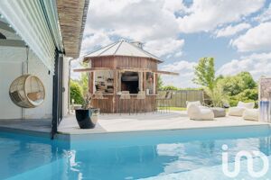 Iad France - Jonathan Abdallah vous propose : Maison d'Architecte de 300 m² au calme et sur une parcelle arborée de 6500 m². Avec ses grands volumes, elle se compose d'une entrée sur séjour, une cuisine ouverte toute équipée / aménagée avec son cellier, du séjour on y trouve une cave enterrée, climatisée et meublée, un salon avec son espace cinéma, un accès sur le pool-house qui accueille une piscine intérieure, un spa sept places et un sanitaire (douche et wc). Dans la partie nuit, une buanderie, une suite parentale avec dressing et salle de bain, deux chambres avec salles d'eau privatives et un bureau. À l'étage un studio entièrement équipé de 50 m² avec terrasse. À l'extérieur un carport pouvant accueillir 4 véhicules avec sa propre centrale photovoltaïque, puits avec rendement, arrosage intégré complet avec drainage du terrain par pompe de relevage. Une piscine chauffée avec la géothermie, sa terrasse et zone de repos. Tondeuse autonome. Chauffage au sol et climatisation réversible en gainable. Système audio et hifi dernière technologie avec son dans toutes les pièces de la maison et en extérieur. Matériaux de qualité. À visiter sans plus attendre ! Honoraires d'agence à la charge du vendeur. Information d'affichage énergétique sur ce bien : classe ENERGIE B indice 80 et classe CLIMAT A indice 2. Les informations sur les risques auxquels ce bien est exposé, y compris l'obligation légale de débroussaillement, sont disponibles sur le site Géorisques : http://www.georisques.gouv.fr. La présente annonce immobilière a été rédigée sous la responsabilité éditoriale de M Jonathan Abdallah mandataire indépendant en immobilier (sans détention de fonds), agent commercial de la SAS I@D France immatriculé au RSAC de LIBOURNE sous le numéro 522620343, titulaire de la carte de démarchage immobilier pour le compte de la société I@D France SAS.
