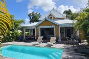Iad France - Juliette Dehaene (06 87 51 19 99) vous propose : Numéro non surtaxé, je suis bien à SAINT-FRANCOIS pour vous faire visiter. VILLA MEUBLEE AVEC PISCINE DANS RESIDENCE SECURISEE ! Venez découvrir ce hâvre de paix, situé sur la route touristique de Saint-François ! À 2 pas de la plage de l'Anse des Rochers, proche du centre ville, des restaurants, cette villa est idéalement située pour y vivre ou pour un investissement locatif. Vous serez séduits par l'emplacement mais également par la résidence sécurisée bien entretenue. La villa est à l'abris des regards, sur une parcelle de 800 m² environ, aucun vis a vis ! Elle dispose de 2 cuves pour palier aux coupures d'eau et pour arroser le jardin. L'assainissement est conforme, la micro station est récente ! Cette jolie villa est vendue PRETE A L'EMPLOI, entièrement meublée et décorée. Elle dispose de 3 chambres, chacune avec salle d'eau privative. La cuisine est aménagée et équipée, ouverte afin de profiter de vos invités. La pièce de vie est ventilée et donne sur une terrasse spacieuse face à la piscine. Les espaces détentes sont nombreux et agréables, vous n'avez plus qu'à poser vos valises et profiter ! Vous l'aurez compris, une visite s'impose, contactez-moi. La présente annonce immobilière vise 1 lot principal situé dans une copropriété formant 27 lots au total ne faisant l'objet d'aucune procédure en cours et d'un montant de charges d’environ 53.25 € par mois (soit 639 € annuel) déclaré par le vendeur. Honoraires d’agence à la charge du vendeur. Information d'affichage énergétique sur ce bien : classe ENERGIE A indice 14 et classe CLIMAT NS indice. Les informations sur les risques auxquels ce bien est exposé sont disponibles sur le site Géorisques : www.georisques.gouv.fr. La présente annonce immobilière a été rédigée sous la responsabilité éditoriale de Mlle Juliette Dehaene EI (ID 33077), mandataire indépendant en immobilier (sans détention de fonds), agent commercial de la SAS I@D France immatriculé au RSAC de POINTE-A-PITRE sous le numéro 844226977, titulaire de la carte de démarchage immobilier pour le compte de la société I@D France SAS. Le présent bien est commercialisé dans le cadre d'une délégation de mandat. Retrouvez tous nos biens sur notre site internet. www.iadfrance.fr.