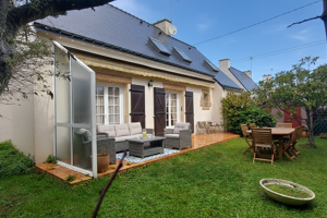 Iad France - Aurélie Jouan vous propose : Presque ile de Quiberon en plein coeur du centre a 500 m de la mer et les commerces a pieds. Tres jolie maison au charme breton idealement située, elle offre une vie de plain pieds. Au rdc, enrée, wc, belle piece de vie double eposition avec cheminée, donnant sur la terrasse et le jardin sans vis a vis, cuisine independante amenagée (possibilité d'ouvrir cette piece sur le sejour) donnant sur une arriere cuisine buanderie, belle chambre parentale avec salle d'eau privative. À l 'etage sur dalle beton, 2 belles chambres, un bureau avec coin dressing, une salle de bains avec wc. Garage et au dessus grenier. Joli terrain clos et arboré. Rare a la vente cette maison est en tres bon etat a vos visites alors. Honoraires d'agence à la charge de l'acquéreur. Prix honoraires inclus : 470000 euros. Prix hors honoraires : 454000 euros. Honoraires TTC à la charge de l'acquéreur (3,52% du prix du bien hors honoraires) : 16000 euros. Information d'affichage énergétique sur ce bien : classe ENERGIE D indice 209 et classe CLIMAT B indice 8. Les informations sur les risques auxquels ce bien est exposé, y compris l'obligation légale de débroussaillement, sont disponibles sur le site Géorisques : http://www.georisques.gouv.fr. La présente annonce immobilière a été rédigée sous la responsabilité éditoriale de Mme Aurélie Jouan mandataire indépendant en immobilier (sans détention de fonds), agent commercial de la SAS I@D France immatriculé au RSAC de Saint Brieuc sous le numéro 811540905, titulaire de la carte de démarchage immobilier pour le compte de la société I@D France SAS.