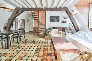 Découvrez ce charmant duplex de 70 m² au sol (55 m² loi Carrez), idéalement niché au 17, rue des Rosiers, une adresse emblématique au cœur vibrant du Marais, dans le 4e arrondissement de Paris. Cette rue historique, réputée pour son animation et son atmosphère unique, offre un cadre de vie exceptionnel, alliant le charme de l'ancien à la vitalité urbaine. Situé au 3e et dernier étage d'un immeuble du XVIIe siècle, sans ascenseur mais doté d'un grand escalier majestueux, cet appartement bénéficie d'une exposition Est / Ouest qui garantit une luminosité optimale tout au long de la journée. Orienté sur cour, il offre un calme appréciable, un véritable havre de paix au sein de l'effervescence parisienne. La tranquillité des lieux, combinée à la richesse historique de l'immeuble, confère à ce bien un caractère unique et une atmosphère sereine. Le premier niveau du duplex se compose d'une entrée accueillante menant à un salon spacieux et une salle à manger conviviale, parfaits pour recevoir ou se détendre. La cuisine ouverte, entièrement équipée, est conçue pour optimiser l'espace et favoriser les moments de partage. Un coin bureau discret est également aménagé, offrant un espace dédié au travail ou à la lecture. Des toilettes complètent ce niveau, ajoutant à la fonctionnalité de l'ensemble. À l'étage, sous les toits, se déploie l'espace nuit. Vous y trouverez une première chambre accessible depuis le palier, prolongée par une salle de bain privative équipée d'une baignoire, offrant un confort optimal. Une deuxième chambre séparée, dotée de sa propre porte, assure intimité et tranquillité. Entre ces deux chambres, un espace polyvalent peut être aménagé en dressing spacieux ou en coin lecture cosy, selon vos besoins et vos envies. La disposition des pièces à l'étage a été pensée pour maximiser l'utilisation de l'espace et offrir une grande flexibilité d'aménagement. L'appartement est entièrement équipé pour un confort immédiat. La cuisine est dotée d'un lave-vaisselle, d'un lave-linge, d'un réfrigérateur avec congélateur, d'un four, de plaques de cuisson, d'un micro-ondes, ainsi que de tous les ustensiles, couverts et assiettes nécessaires pour cuisiner. Ce niveau d'équipement permet une installation sans contrainte et une vie quotidienne facilitée. Une caution de deux mois de loyer est demandée pour ce bien meublé. Ce duplex convient parfaitement à un couple recherchant un cadre de vie exceptionnel et un confort moderne au cœur de Paris. La configuration des lieux permet également d'envisager une colocation pour deux personnes, offrant ainsi une solution de logement flexible et agréable. La richesse du quartier, la qualité du bien et son emplacement privilégié en font une opportunité rare sur le marché immobilier parisien. Le quartier du Marais est réputé pour son histoire, ses galeries d'art, ses boutiques de créateurs, ses cafés et restaurants branchés. Vous profiterez d'une vie de quartier animée avec un accès facile à de nombreux commerces de proximité, marchés et supermarchés. Les espaces verts ne sont pas en reste, avec la Place des Vosges à quelques minutes à pied, offrant un cadre idyllique pour des promenades et des moments de détente. La proximité de la Seine et de ses quais aménagés ajoute également au charme du quartier, invitant à des balades le long du fleuve. En termes de transports, le 4e arrondissement est excellemment desservi. Plusieurs stations de métro se trouvent à proximité, notamment Saint-Paul (ligne 1), Hôtel de Ville (lignes 1 et 11) et Pont Marie (ligne 7), permettant de rejoindre rapidement les principaux pôles d'activité et les autres quartiers de Paris. De nombreuses lignes de bus complètent cette offre de transport, assurant une mobilité aisée dans toute la capitale. La gare de Châtelet-Les Halles, un hub majeur, est également facilement accessible, offrant des correspondances RER et métro vers l'ensemble de l'Île-de-France. Ce duplex représente une opportunité unique de vivre une expérience parisienne authentique et raffinée. Honoraires locataire : 1050 € Dont : - Visite, constitution du dossier, rédaction de bail : 840 € - Établissement état des lieux : 210 € Dépôt de garantie : 4600 € Location Meublée, Loyer 2450 € / mois C. C, dont charges mensuelles : 150 €.