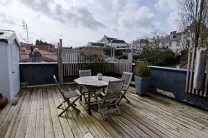 Votre agence 123webimmo vous présente : Plein centre, tout à pied pour cette jolie maison de ville de 1948, offrant 4 chambres + T1 bis (rapport locatif), 3 garages. Vous cherchez un grand appartement dans le centre-ville ? Cette maison de ville pourrait peut-être vous convenir, très bien située, avec sa terrasse de 30 m² et ses 3 garages (sans aucune charge de copropriété évidemment). Le logement principal, de type 4 (3 chambres + bureau), propose une très belle partie vie, 50 m² environ, y compris cuisine donnant accès, par une grande baie à galandage, à une superbe terrasse de 30 m² sans vis-à-vis, bien orientée. La partie nuit offre 3 chambres. Salle d'eau et wc séparés à chaque niveau. Bureau. Appartement indépendant (accès direct rue sans passer par la maison) actuellement loué (510 € / mois charges comprises) avec chambre séparée (petit T2). Garage double (2 portes motorisées) accessible de la maison principale + 2ème garage simple complétement indépendant (actuellement loué 90 € / mois). Vous pourrez donc profiter d'un cadre de vie optimal, en centre-ville, et de revenus locatifs non négligeables (sans croiser les locataires), ou alors loger votre grande famille avec un potentiel de 5 chambres (en transformant par exemple l'appartement en suite parentale) + possibilité de mettre 3 véhicules à l'abri et / ou stockage. Grande cave. Les informations sur les risques auxquels ce bien est exposé sont disponibles sur le site georisques. gouv. fr.