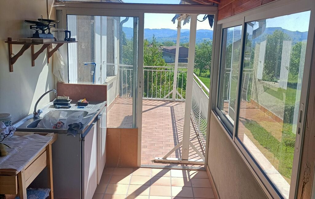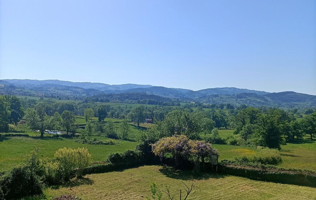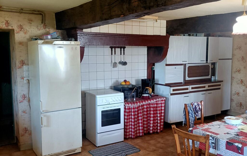 SECTEUR CHAUFFAILLES. Dans un petit village au calme et superbe vue : Propriété familiale avec caractère et cachet , comprenant deux habitations dont l'une occupée actuellement. Elevé sur caves , l'ensemble dispose d'un gros oeuvre en bon état et des intérieurs à restaurer. Habitation libre comprenant: entrée / véranda , salle à manger/salon sur balcon/terrasse , cheminée , une cuisine , deux chambres sur parquet , salle de douches , cabinet de toilette et wc. Cellier , cave , atelier , chaufferie. Très bel enclos arboré. Habitation occupée comprenant: hall , une pièce de vie / coin cuisine / cellier , salle de douches , wc , salle à manger / salon. Etage sur parquet : trois chambres avec rgts. Combles totalement aménageables avec superbe charpente. Grande cour , abris bois /jardin , ancien four à pains . Autre bâtiment en pierres à usage de dépendances ( grange , écurie , fenil ) , cave. Jardin avec puits sur 2170 m2 de terrain plat. HONORAIRES CHARGE VENDEUR