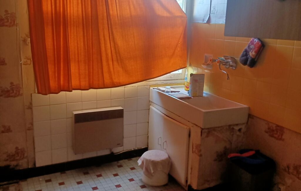 Bonne implantation pour ce petit immeuble avec commodités très proches , au calme. Appartement d'environ 50 m2 à restaurer entièrement disposant d'une très grande terrasse d'environ 45 m2. Habitation comprenant : un hall avec rangement , une petite cuisine indépendante , un séjour /salon sur terrasse , deux chambres avec placards , salle de douches et wc ind. . Chauffage électrique. Cave en sous sol. Place de parking. HONORAIRES CHARGE VENDEUR