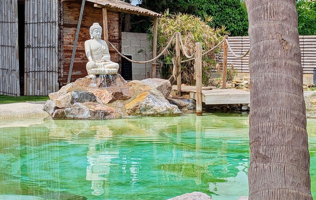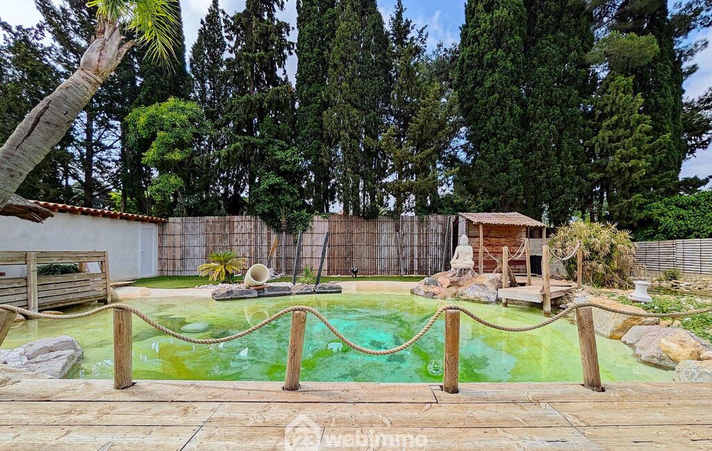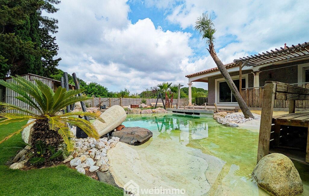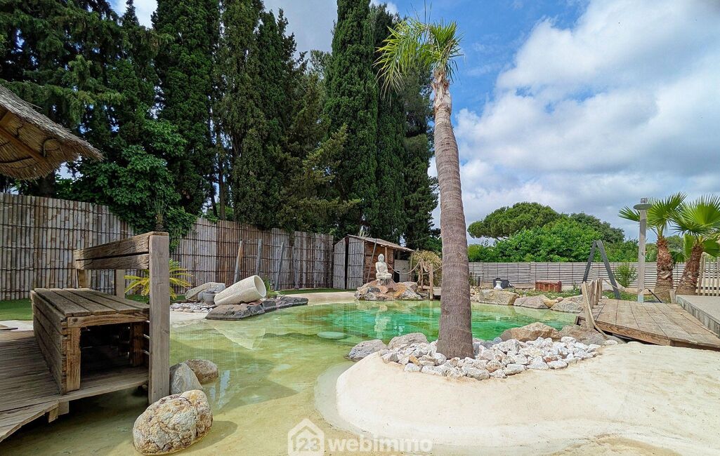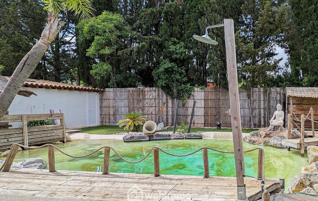 Un extérieur enchanteur : côté détente, laissez-vous transporter dans un véritable havre tropical ! La piscine lagon, aux plages couleur sable en pentes douces, entourée de palmiers, de plantes méditerranéennes et palissades en bambou, vous offre une intimité totale. Ces espaces promettent des moments conviviaux inoubliables pour petits et grands, entre barbecues d'été et ambiance festive.