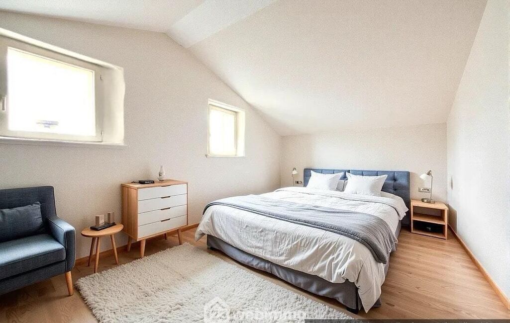Enfin, au dernier niveau, une spacieuse chambre mansardée offre un cocon douillet sous les toits, idéal comme suite parentale ou espace polyvalent.