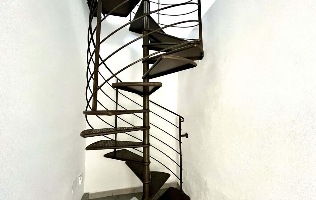 D'une superficie de 63 m², elle s'organise autour d'un superbe escalier en fer forgé sur mesure, véritable pièce maîtresse qui dessert chaque étage avec élégance.