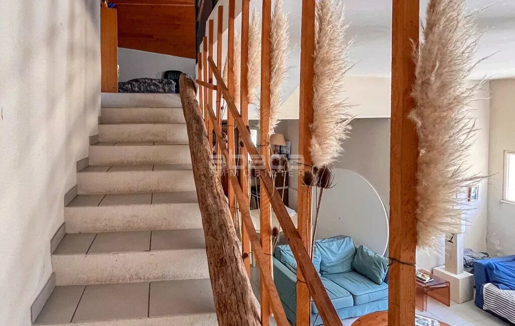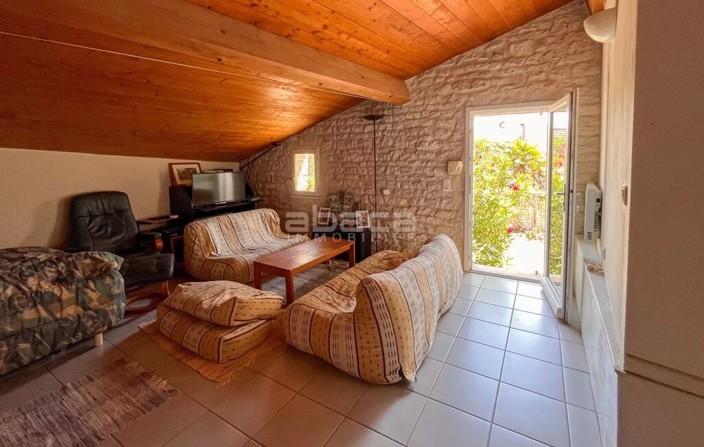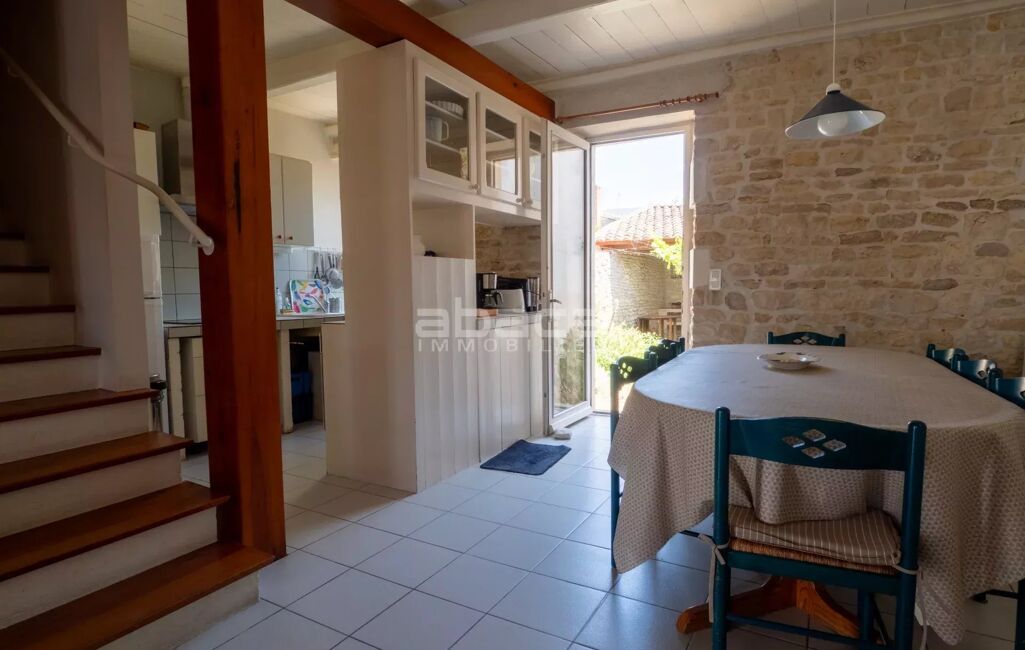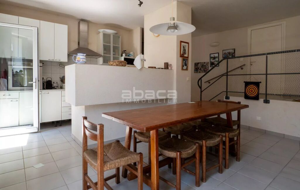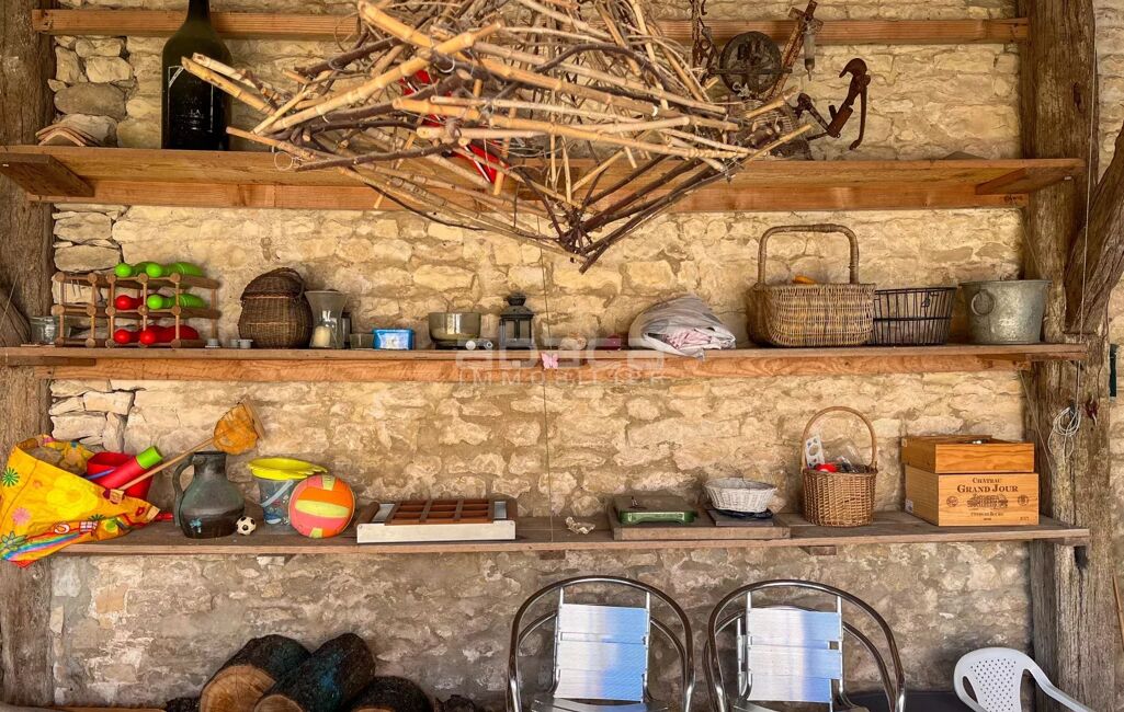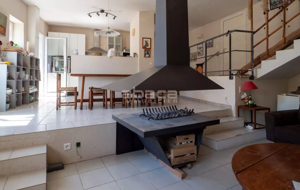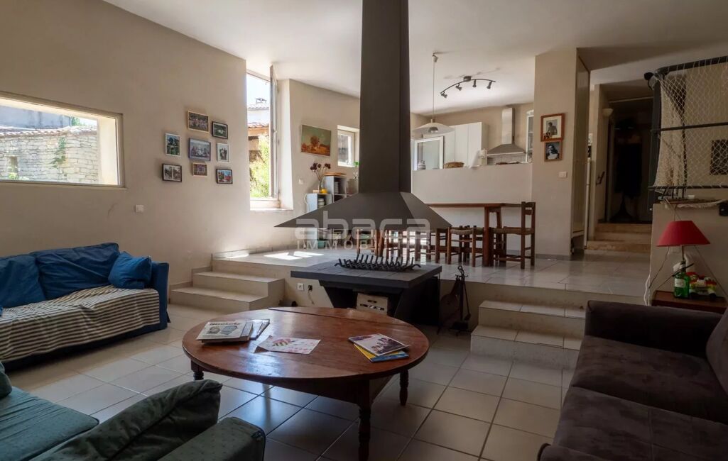 Chai rénové de 160 m² avec beau jardin au sud/sud est, préau, garage : pièce de vie cuisine, buanderie, chambre en annexe. A l'étage : 4 chambres + un dortoir.