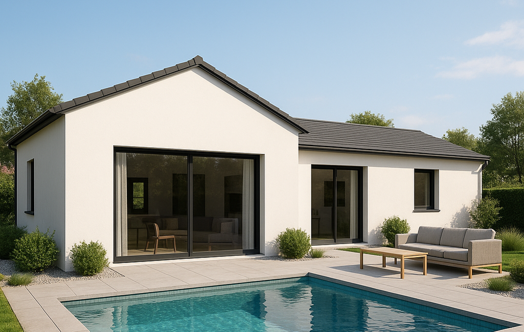 Les Maisons MIKIT VESOUL BESANCON vous proposent une maison personnalisable 4 chambres de 100 m2, de plain-pied avec un garage de 20 m2. Chauffage pompe à chaleur SPLIT avec climatisation.