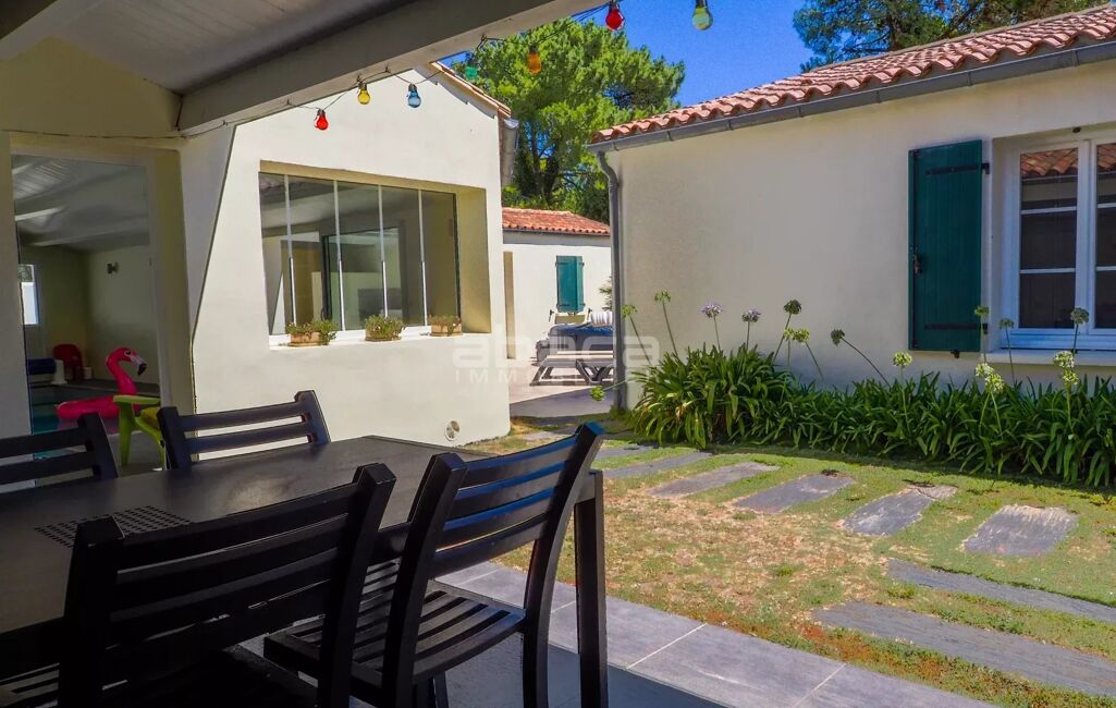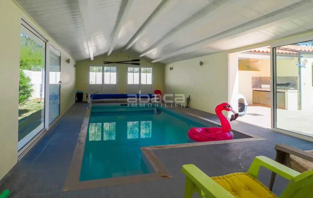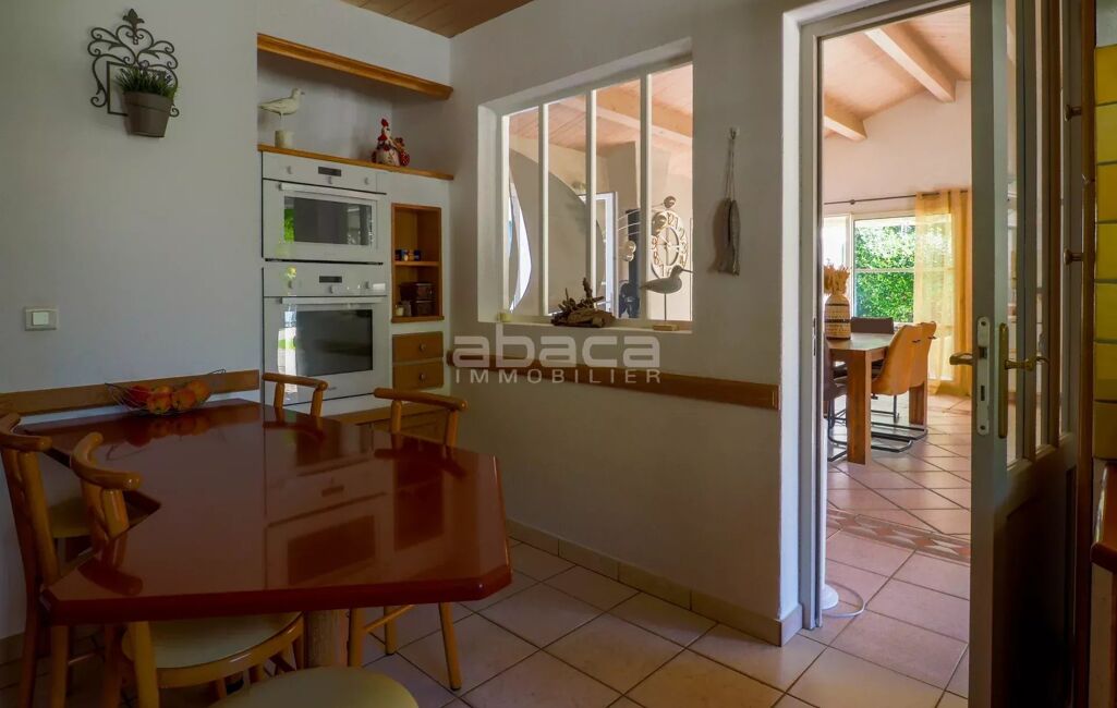 Nouveau, environnement boisé et calme pour cette maison de plain pied où nous découvrons à l'entrée un espace de stationnements avec garage, pièce de vie avec cuisine aménagée équipée, cellier, coin salon avec poêle à bois, espace parentale avec salle d'eau/placards, 3 chambres avec placards, salle de bains + douche, espace bureau/chambre avec salle de douche, lingerie, piscine couverte pour un espace détente à l'abri des regards, préau avec cuisine d'été. Maison confortable.