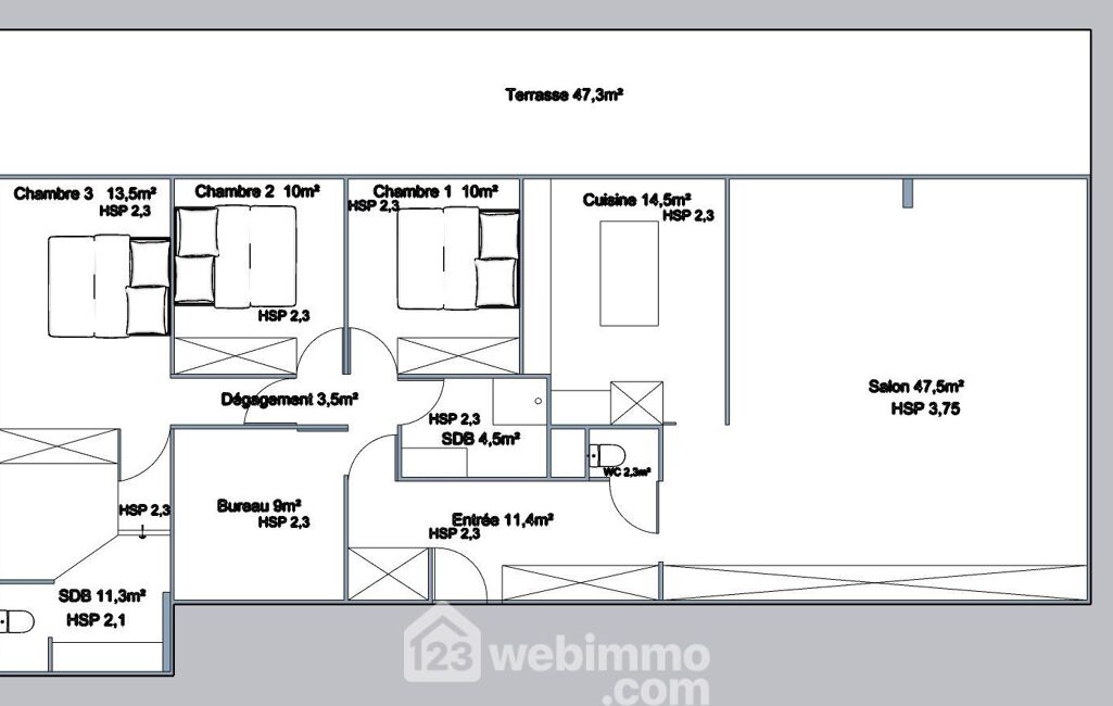 • Surface terrasse : 46.51 m²