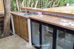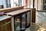 * 1 cuisine d'été aménagée avec point d'eau, frigo de bar, plan de travail et meuble.