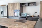 - Cuisine équipée avec îlot central (Frigo américain, plaque de cuisson induction, hotte, four, micro-ondes, L. Vaisselle, L. Linge)