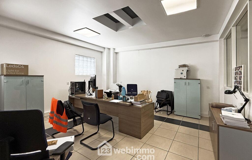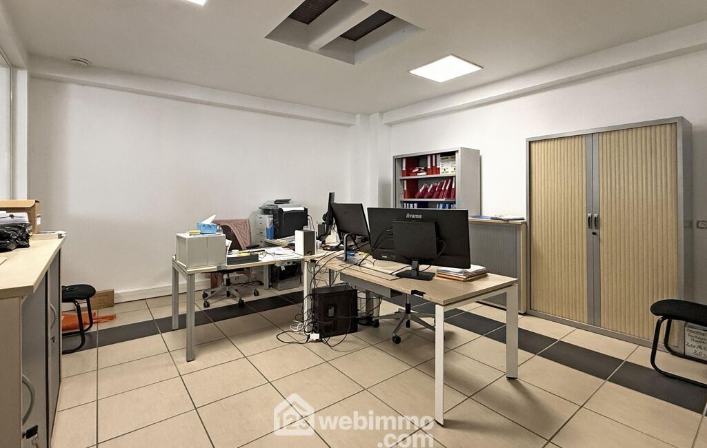 Au calme, dans un quartier pavillonnaire, ce local comprend actuellement trois bureaux, un atelier, une cuisine ouverte sur un espace à vivre ou d'activité de 140 m2, une mezzanine de 90 m2, une salle d'eau, 2 wc et un garage 2 places (voire plus selon aménagement).