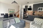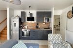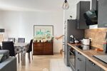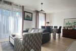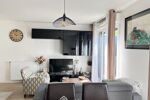 Beau séjour lumineux avec cuisine ouverte aménagée et équipée, donnant directement sur une agréable terrasse privative.