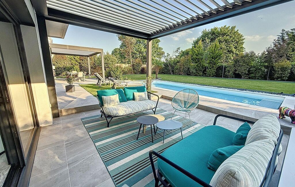 À l'extérieur, tout a été pensé pour votre confort et vos moments de détente : deux terrasses sous pergolas bioclimatiques, un abri de jardin et une superbe piscine chauffée de 10 m x 3,5 m disposant d'un rideau électrique. Le jardin est équipé d'un arrossage automatique.