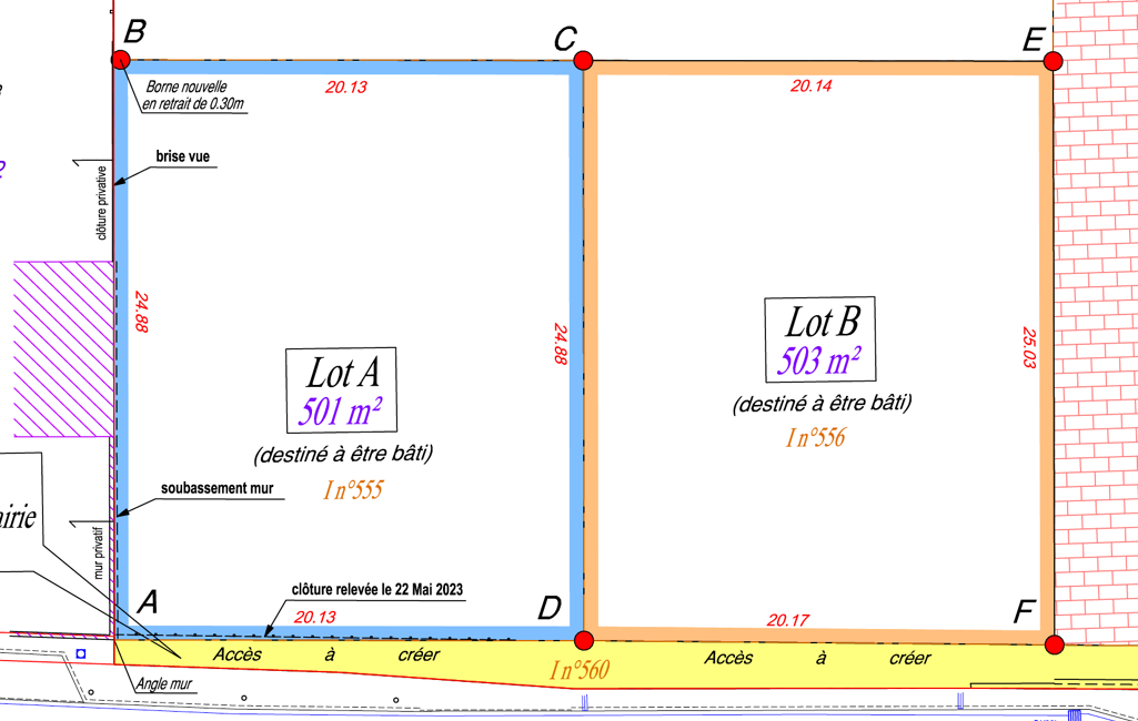 Lots A et B : surfaces de 500 m² chacun, plats et piscinables.