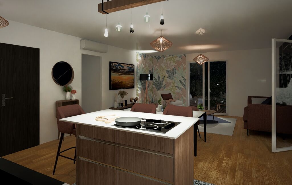 Cette future construction est composée d’une belle pièce de vie de près de 40m², baignée de lumière grâce à sa triple orientation. La cuisine semi ouverte permet un accès direct au cellier. Un véritable de gage de fonctionnalité !