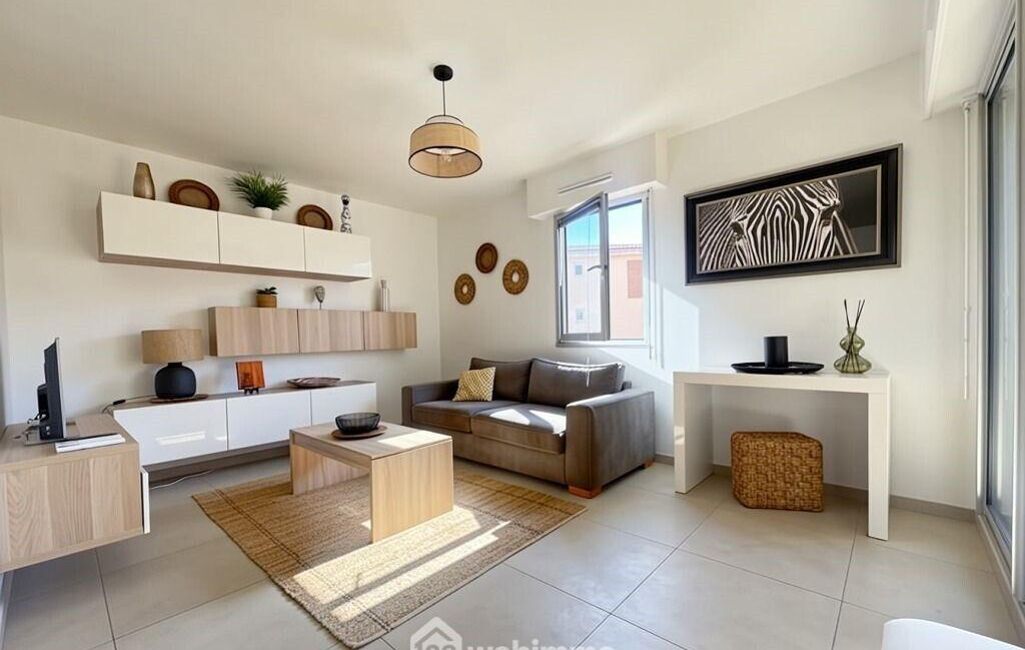 Le séjour, baigné de lumière, s'ouvre sur une terrasse plein sud, véritable prolongement de l'espace de vie.