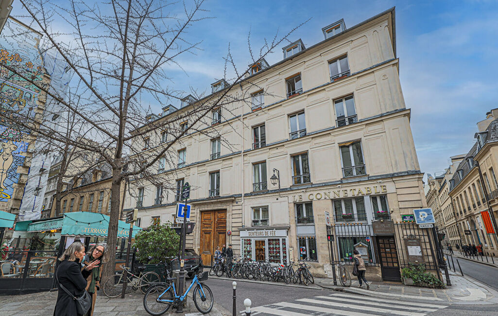 Nous vous proposons ce studio de 26,08 m² au sol (20,71 m² loi Carrez) en excellent état, situé au dernier étage d'un immeuble ancien, à l'intersection de la rue des Archives et de la rue des Haudriettes, à 3 minutes du métro Rambuteau.