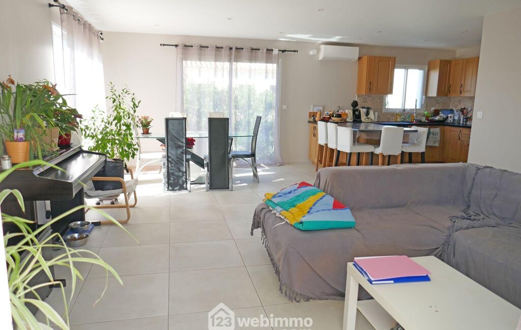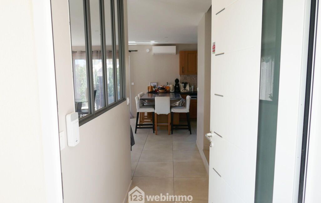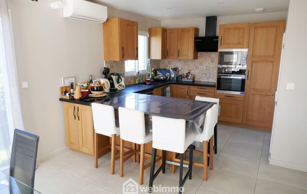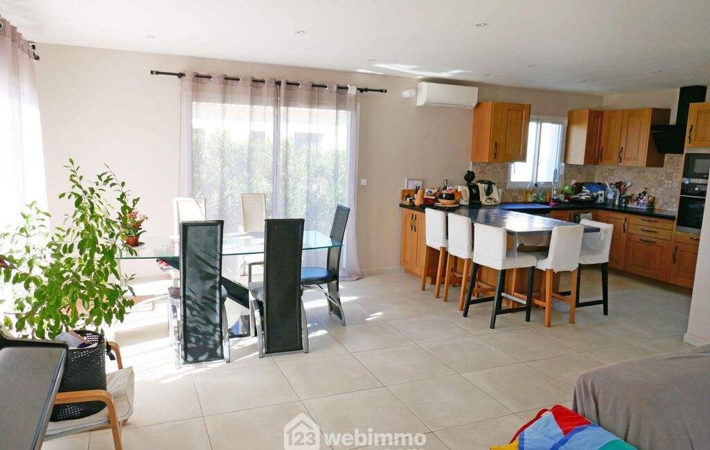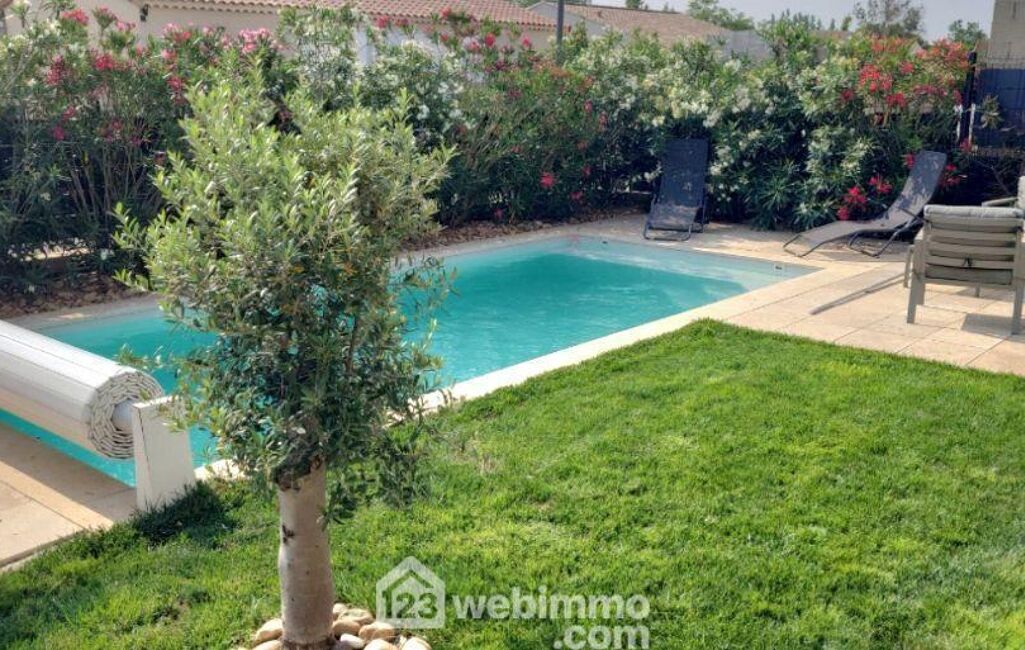 Édifiée en 2022, cette maison offre 100 m² habitables sur un terrain de 400 m² avec piscine 7 x 3 m.