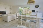 À l'extérieur, une terrasse prolonge l'espace de vie vers un jardin facile à entretenir.