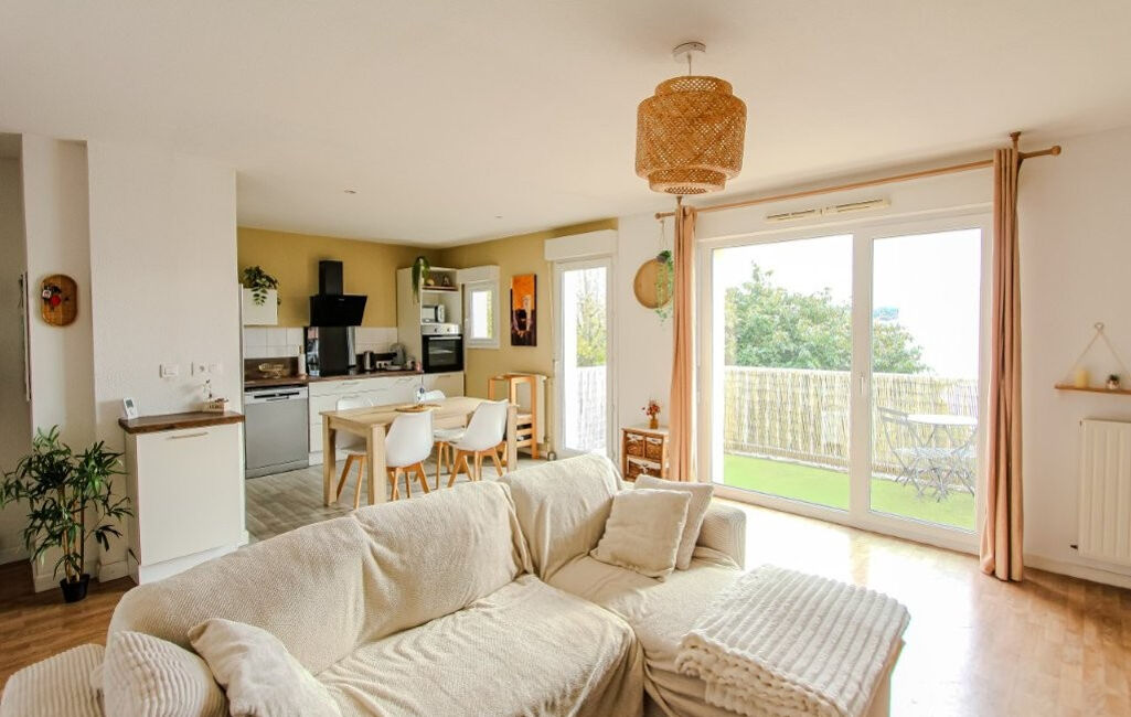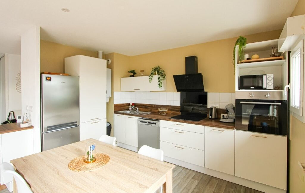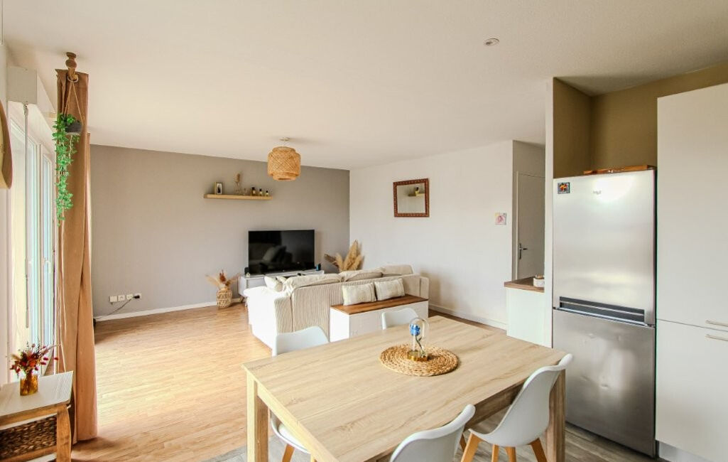 D'une superficie de 66 m², il se compose d'une entrée, une très belle pièce de vie lumineuse avec accès sur la terrasse plein Sud, cuisine ouverte, 2 chambres, une salle de bain, wc indépendant, cellier. Proche à pied des écoles, collège, du complexe sportif et des commerces.