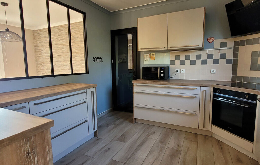 La maison comprend une cuisine entièrement équipée semi ouverte sur un salon/séjour donnant sur une véranda de 15m². 3 chambres (12,18 et 26m²) dont une avec mezzanine de 16m². salle d'eau et 2 wc. Garage/cellier de 28m².