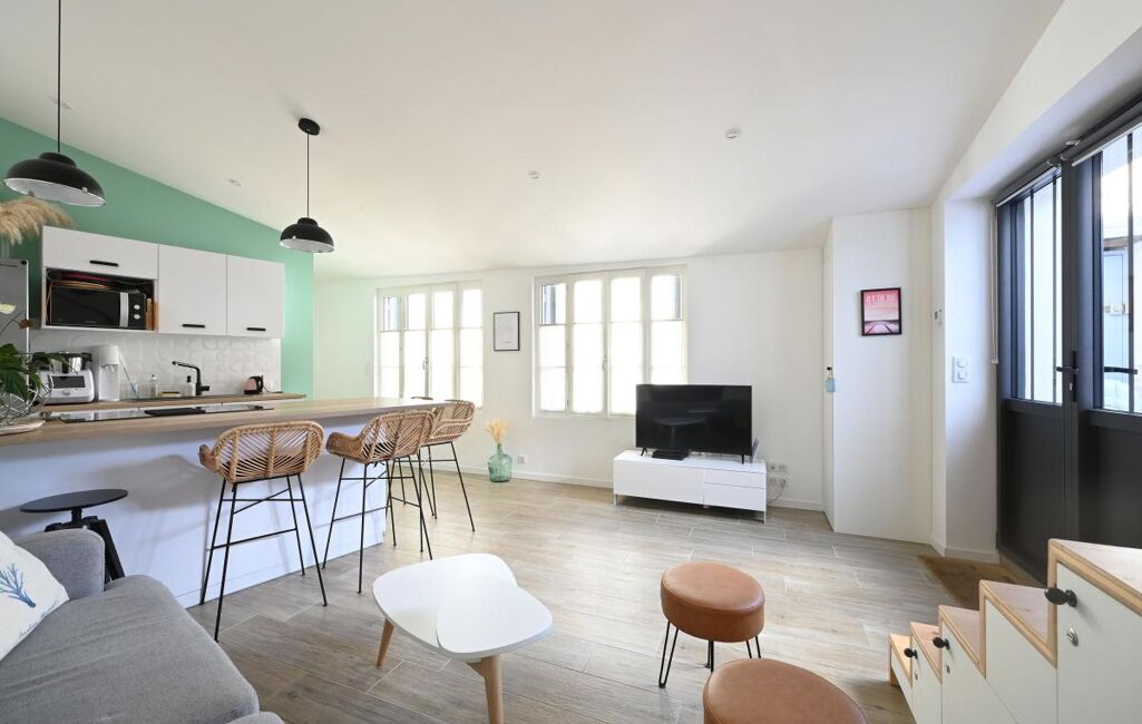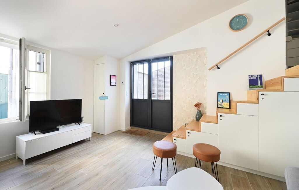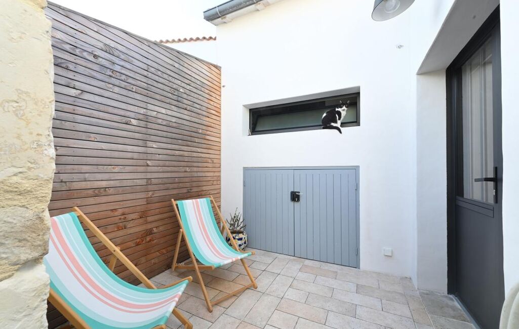 Immobilier Ile De Ré, La Flotte, charmante maison de village idéalement située à proximité immédiate des commerces et du port. Rénovée avec goût, elle offre 2 chambres, un séjour lumineux, une terrasse intime sans vis-à-vis et un local vélos. Elle associe volumes agréables et confort moderne. Contactez nous pour visiter ce véritable coup de cœur.