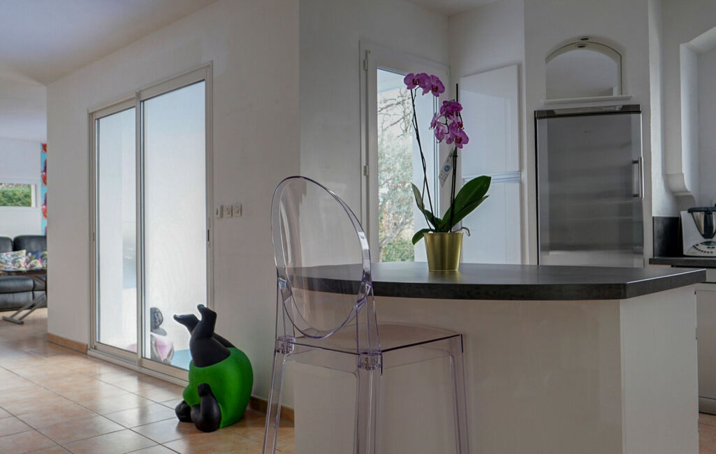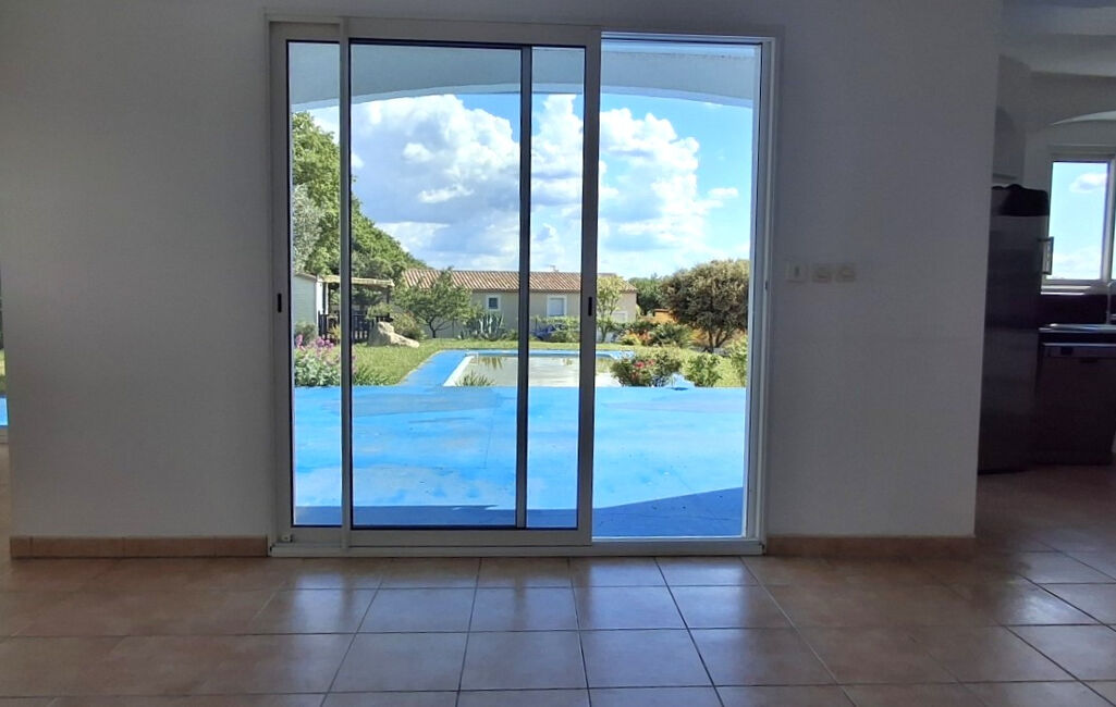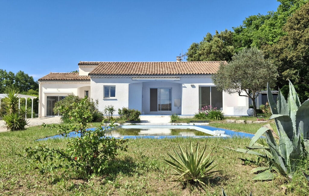 Située entre Montélimar et Grignan, dans quartier très calme d'un petit village, villa de plain-pied de 2003 parfaitement entretenue. Terrain de 1700m² avec piscine, abri voiture,