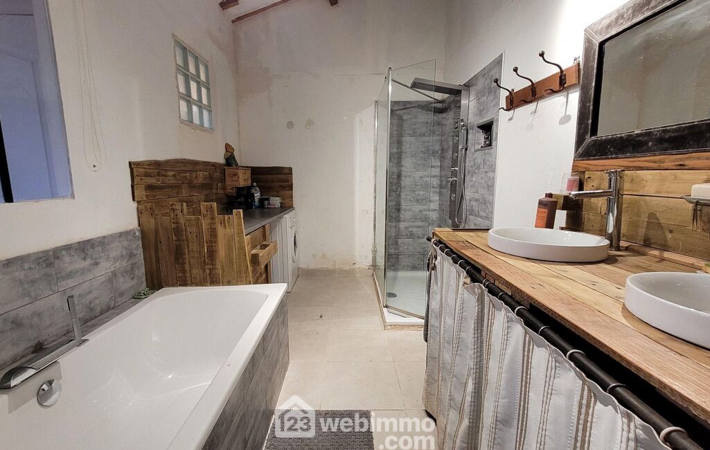 Spacieuse salle de bain + douche, équipée de deux vasques
