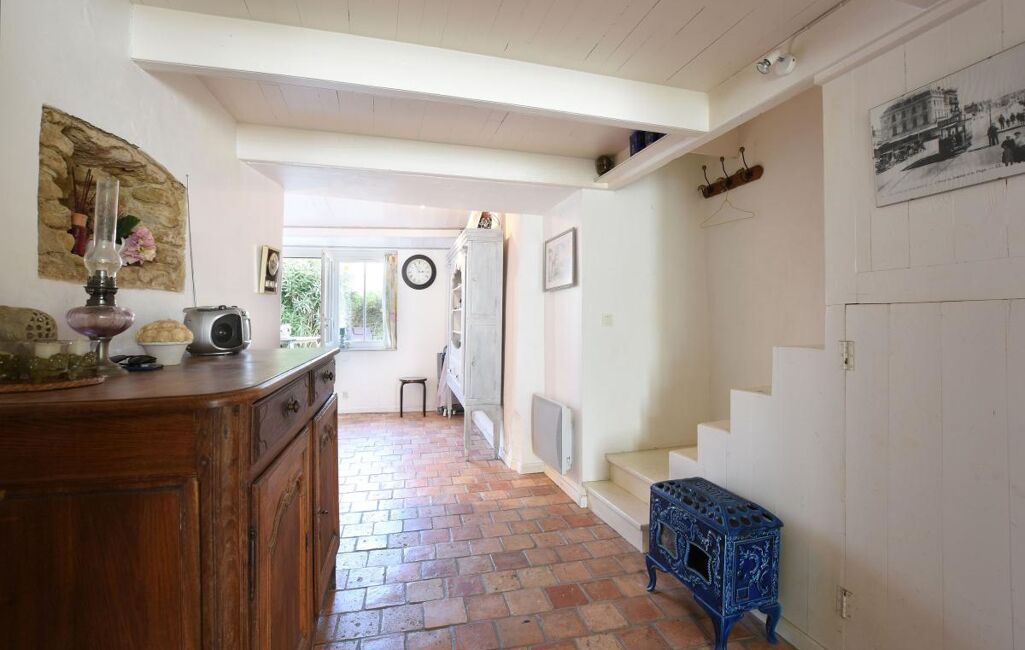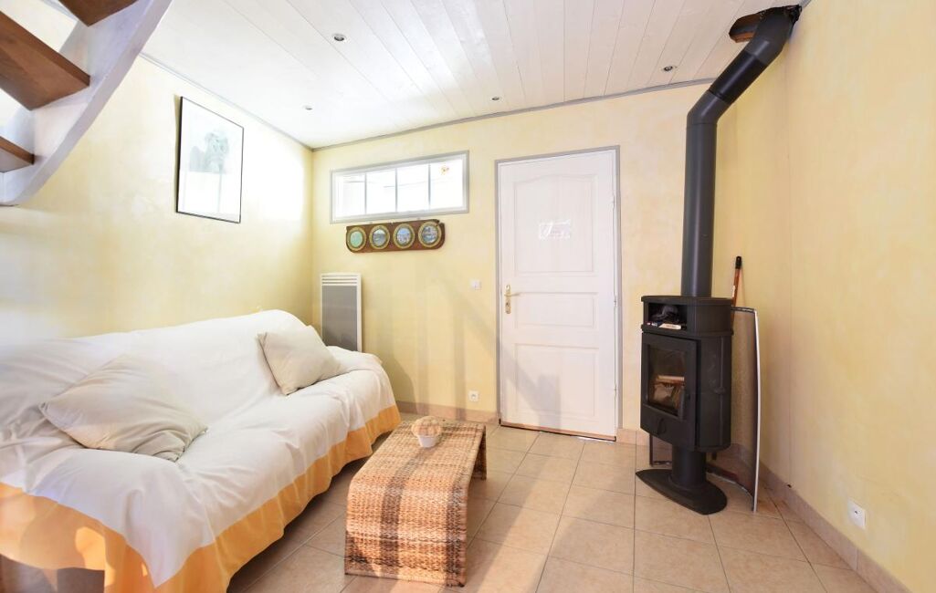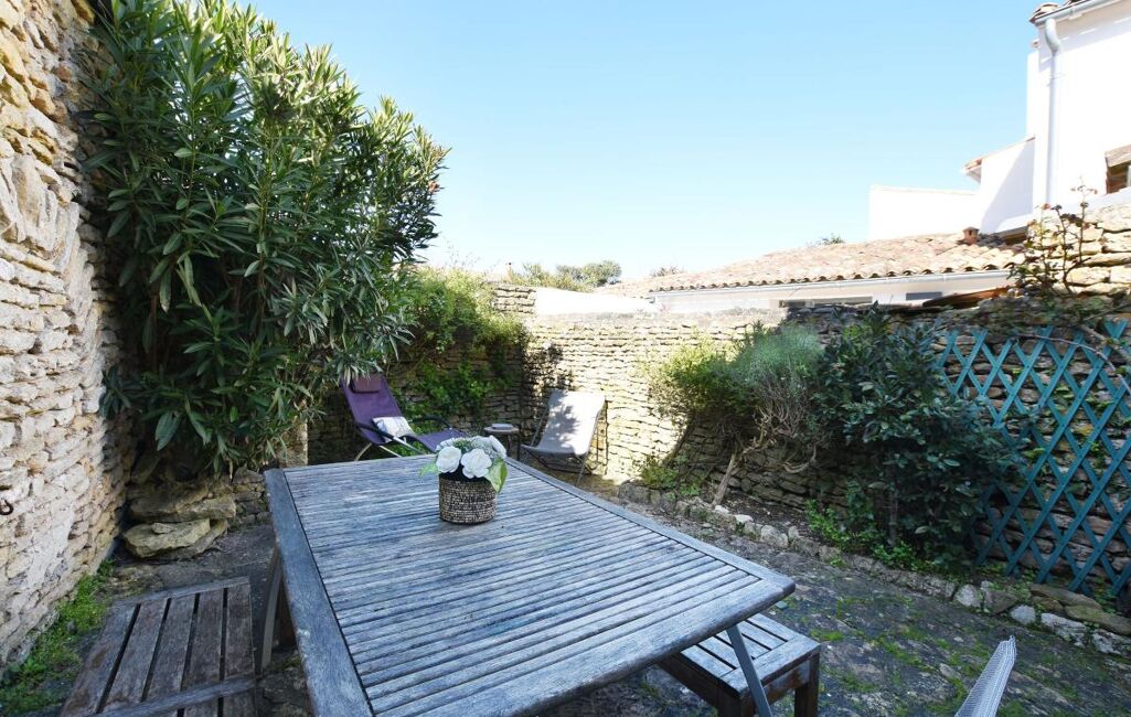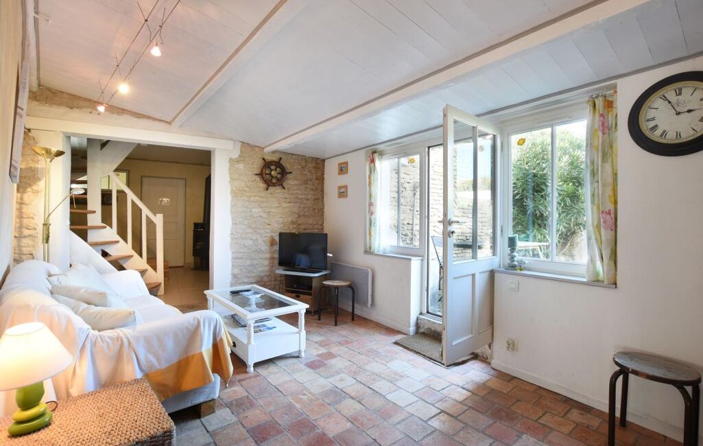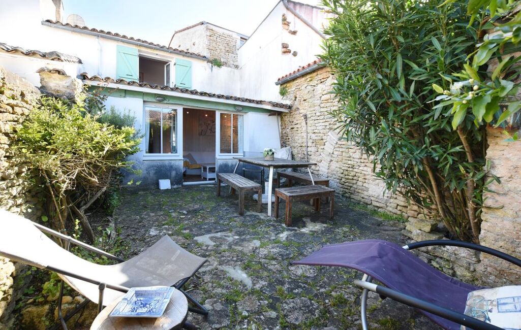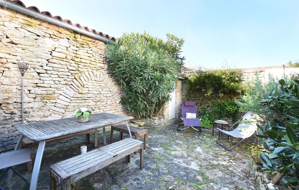 Jolie maison Rétaise située au coeur du village comprenant une pièce de vie salon, salle à manger cuisine ouverte aménagée et équipée, salon avec un poele à bois et un double accès sur ruelle.