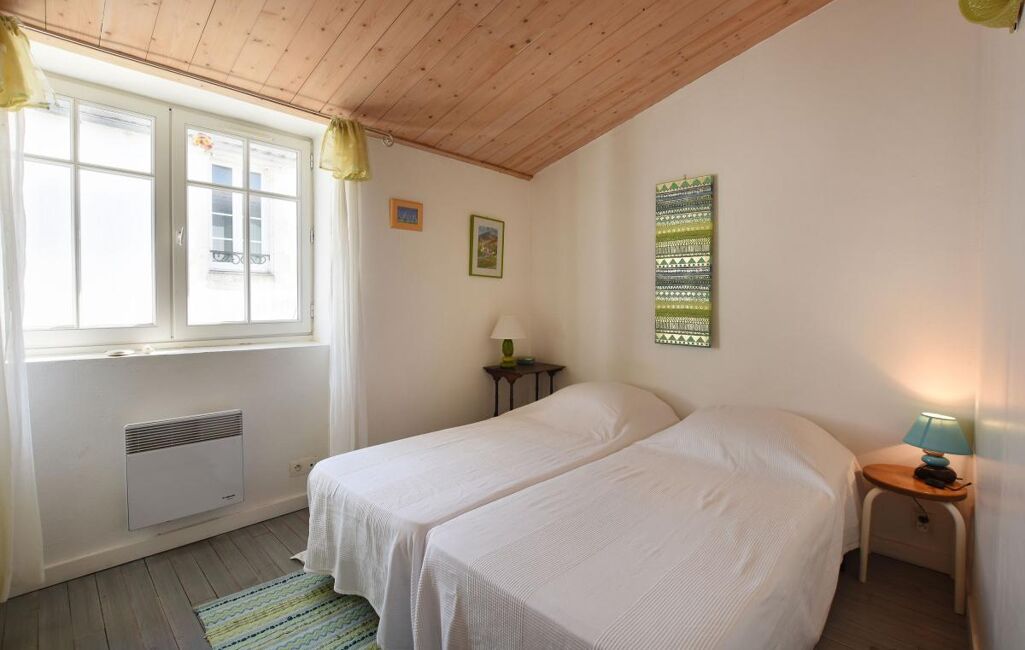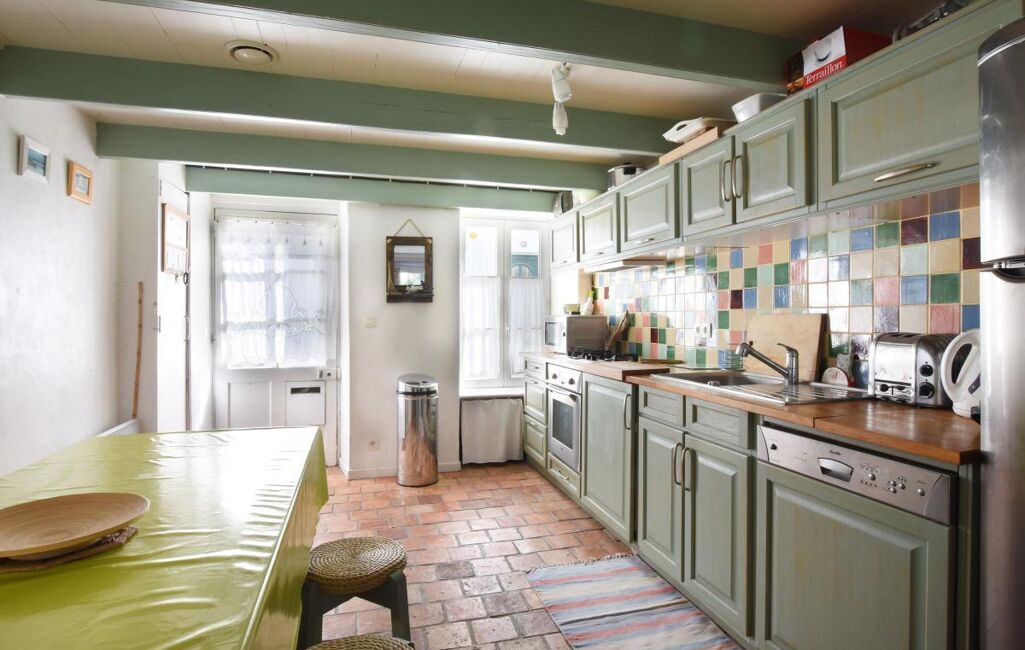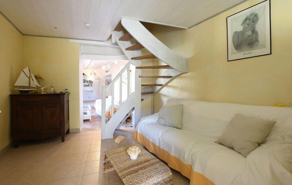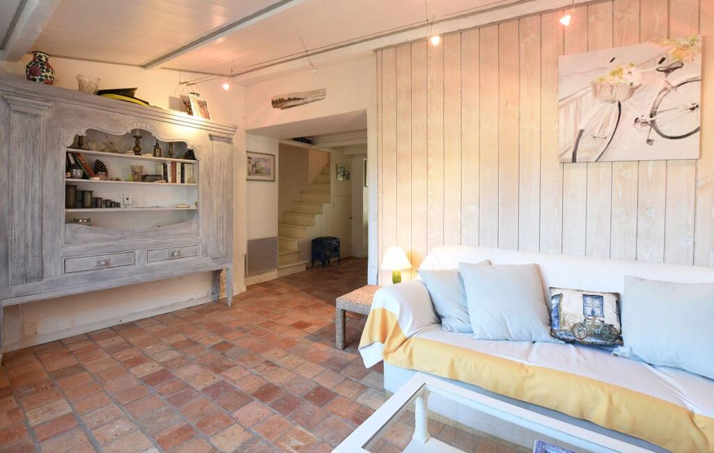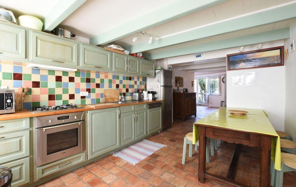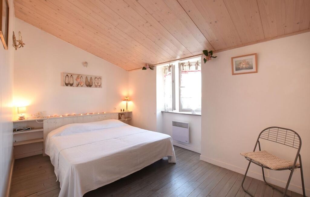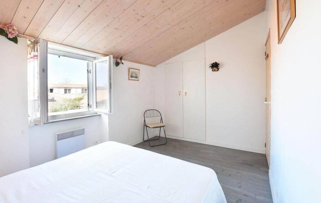 Jolie maison Rétaise située au coeur du village comprenant une pièce de vie salon, salle à manger cuisine ouverte aménagée et équipée, salon avec un poele à bois et un double accès sur ruelle.