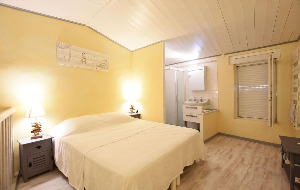 A l'étage une chambre avec salle de douche et wc. Autre palier desservant 2 autres chambres, débarras, salle de douche et wc.