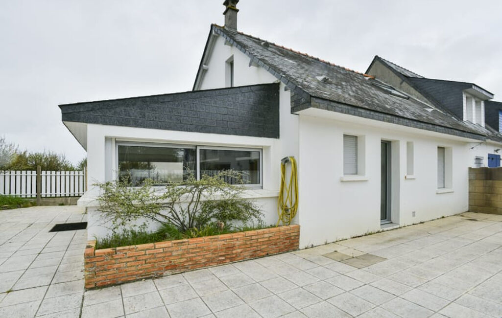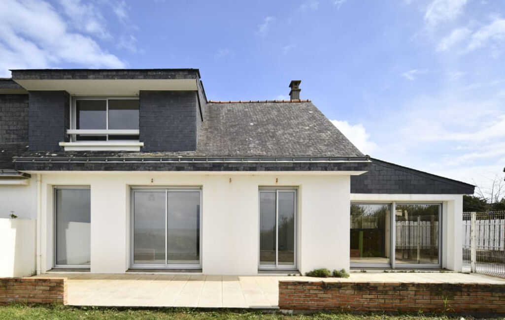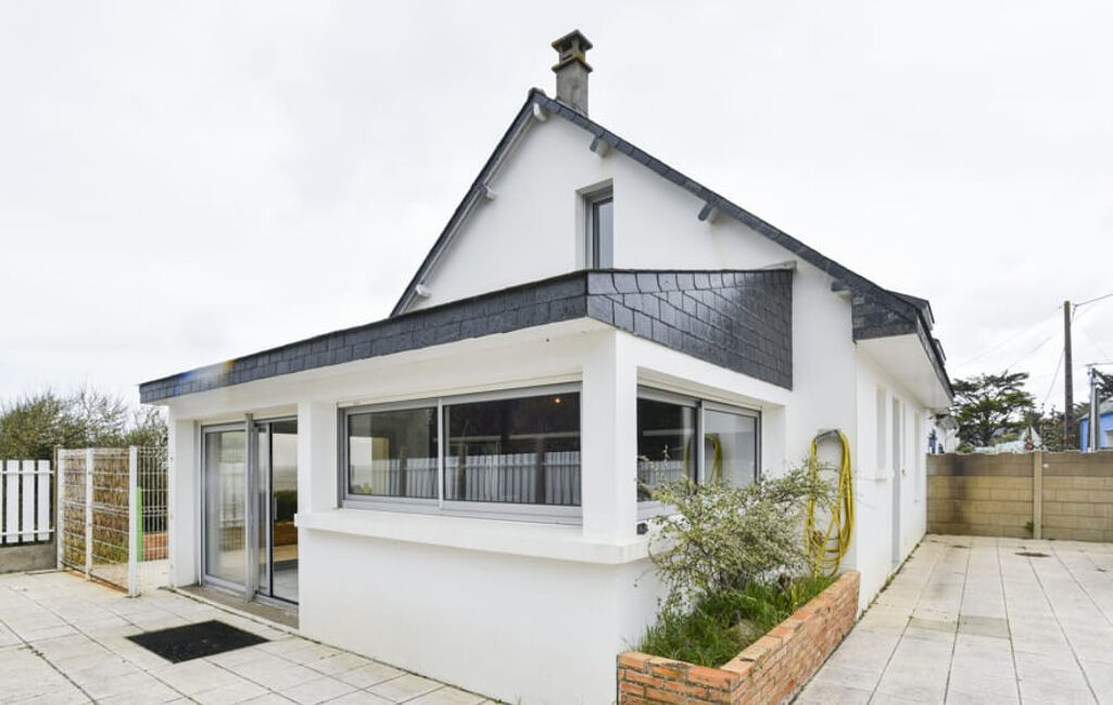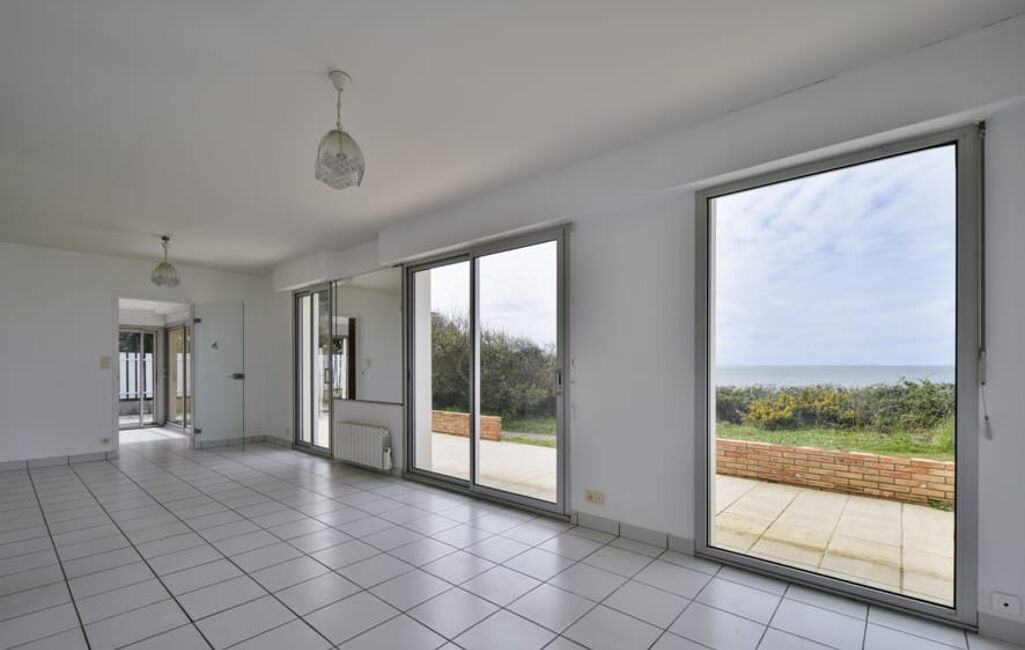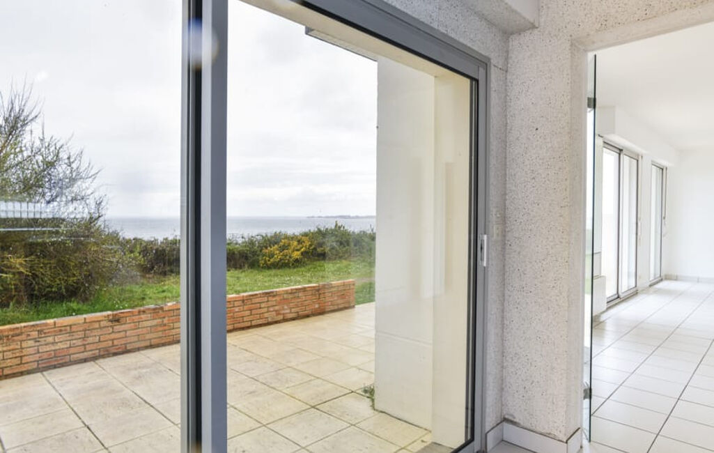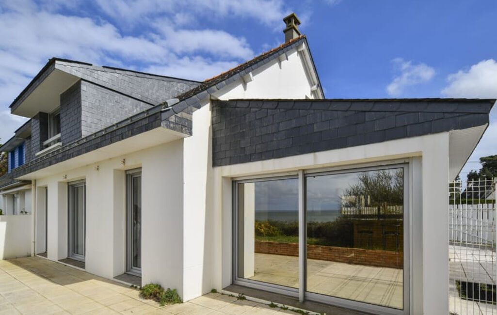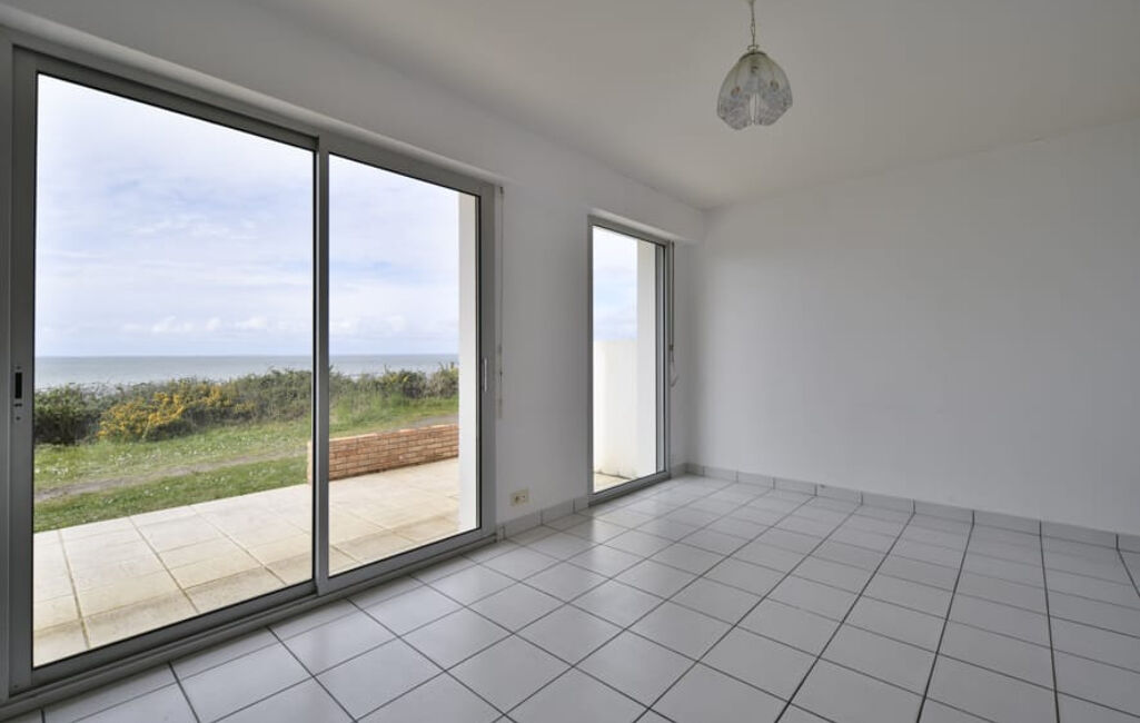 FACE MER - Maison comprenant entrée avec placard, salon séjour avec vue mer, cuisine aménagée et équpée avec vue mer de 19m2, chambre, salle de bains avec baignoire et douche, toilettes.
