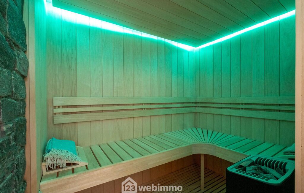 Les équipements dédiés à la montagne font toute la différence : ski-room fonctionnel avec porte-skis et évacuation au sol, rangements, sèche-chaussures pour dix paires, dalle chauffante au rez-de-chaussée et de surcroît, un sauna, offrant un confort optimal au retour des pistes.