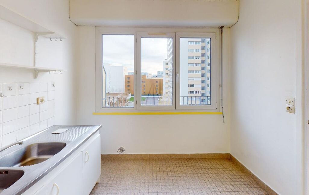 F1 PROCHE UNIVERSITE Appartement de type F1 de 35,83m2 situé au 5eme étage avec ascenseur comprenant : entrée, pièce principale, cuisine, salle de bains, wc, balcon Place de parking en extérieur, cave
